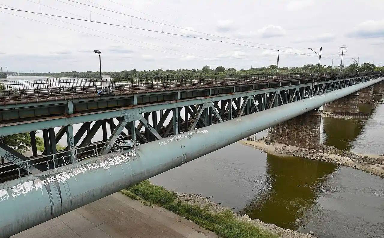 The Citadel Rail Bridge (Most przy Cytadeli) was a bridge in Warsaw, crossing the Vistula River. It opened in November, 1875, and was expanded with a second part in 1908. It was blown up for the final time in September 13, 1944 by retreating Germans and was later replaced with the Gdański Bridge. Read more on Wikipedia