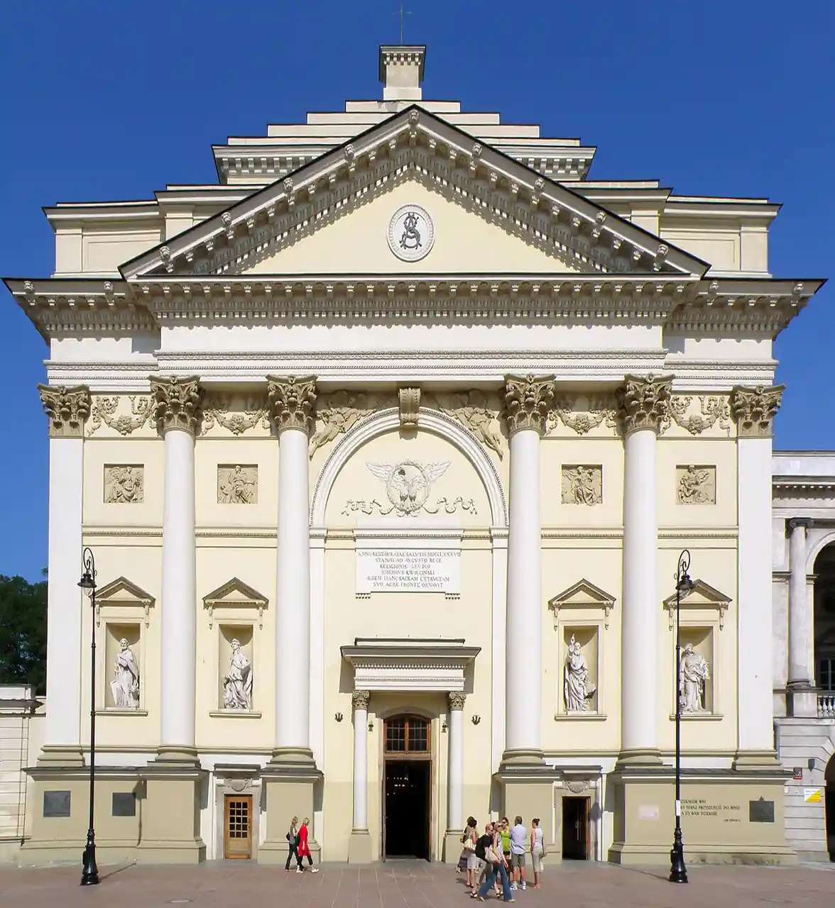 St. Anne's Church () is a church in the historic center of Warsaw, Poland, adjacent to the Castle Square, at Krakowskie PrzedmieĊcie 68. It is one of Poland's most notable churches with a Neoclassical facade. The church ranks among Warsaw's oldest buildings. Over time, it has seen many reconstructions, resulting in its present-day appearance, unchanged since 1788. Currently it is the main church parish of the academic community in Warsaw. Read more on Wikipedia