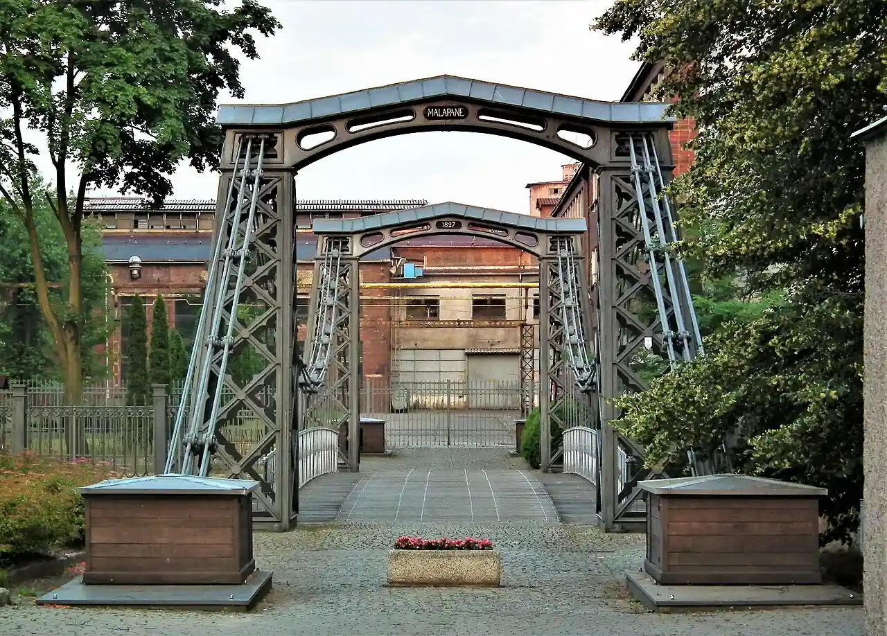 The Ozimek Suspension Bridge () is a suspension bridge over the Mała Panew River in Ozimek, Poland. Designed by Karl Schottelius and completed in 1827, it is the second oldest wrought iron suspension bridge in Europe. Read more on Wikipedia