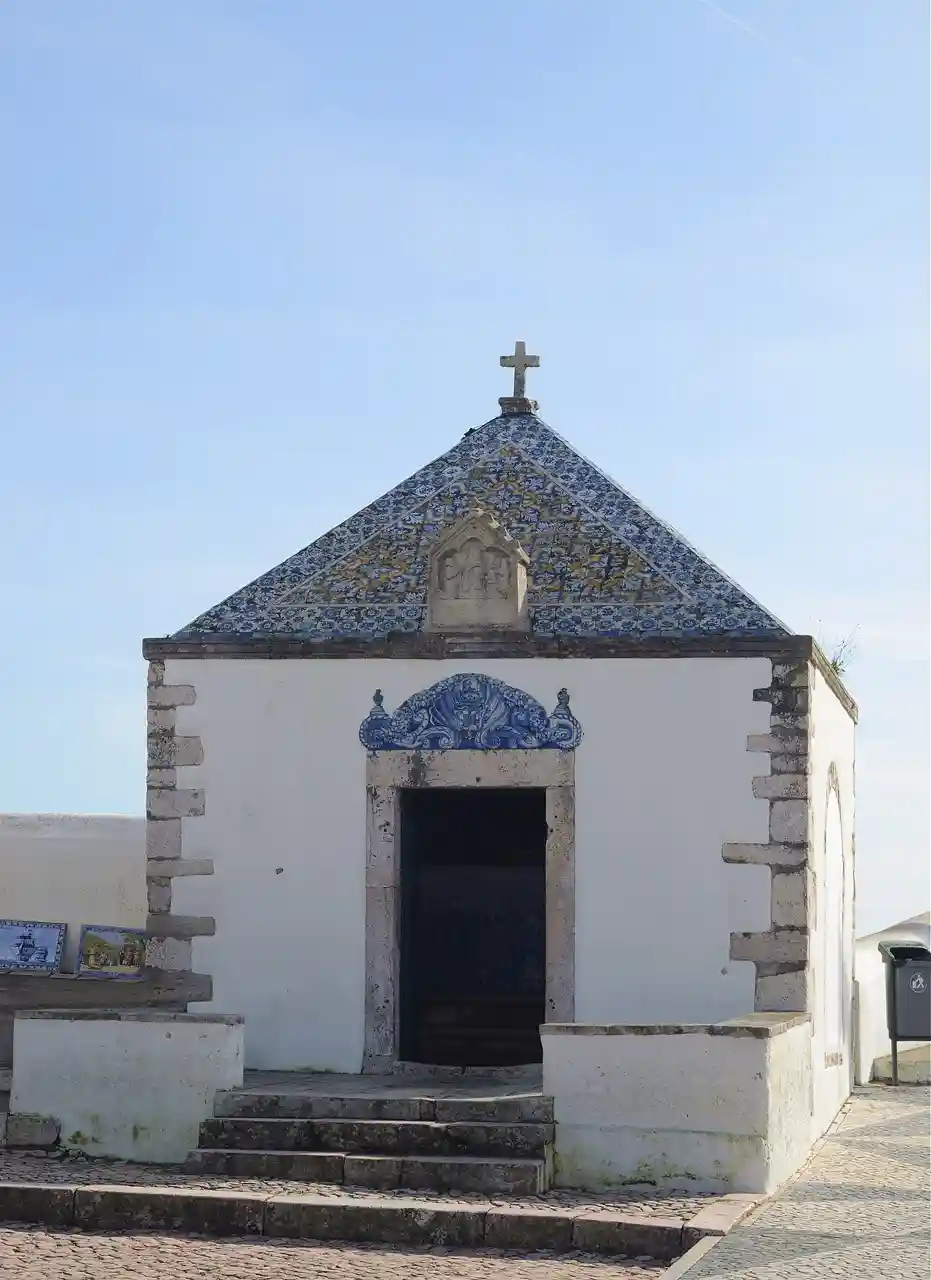 Memory Hermitage, also known as the Chapel of Our Lady of Nazaré (), is located on the edge of promontory in Nazaré, Portugal. It is a four-sided chapel decorated with blue and white tiles and has a pyramidal roof. Read more on Wikipedia