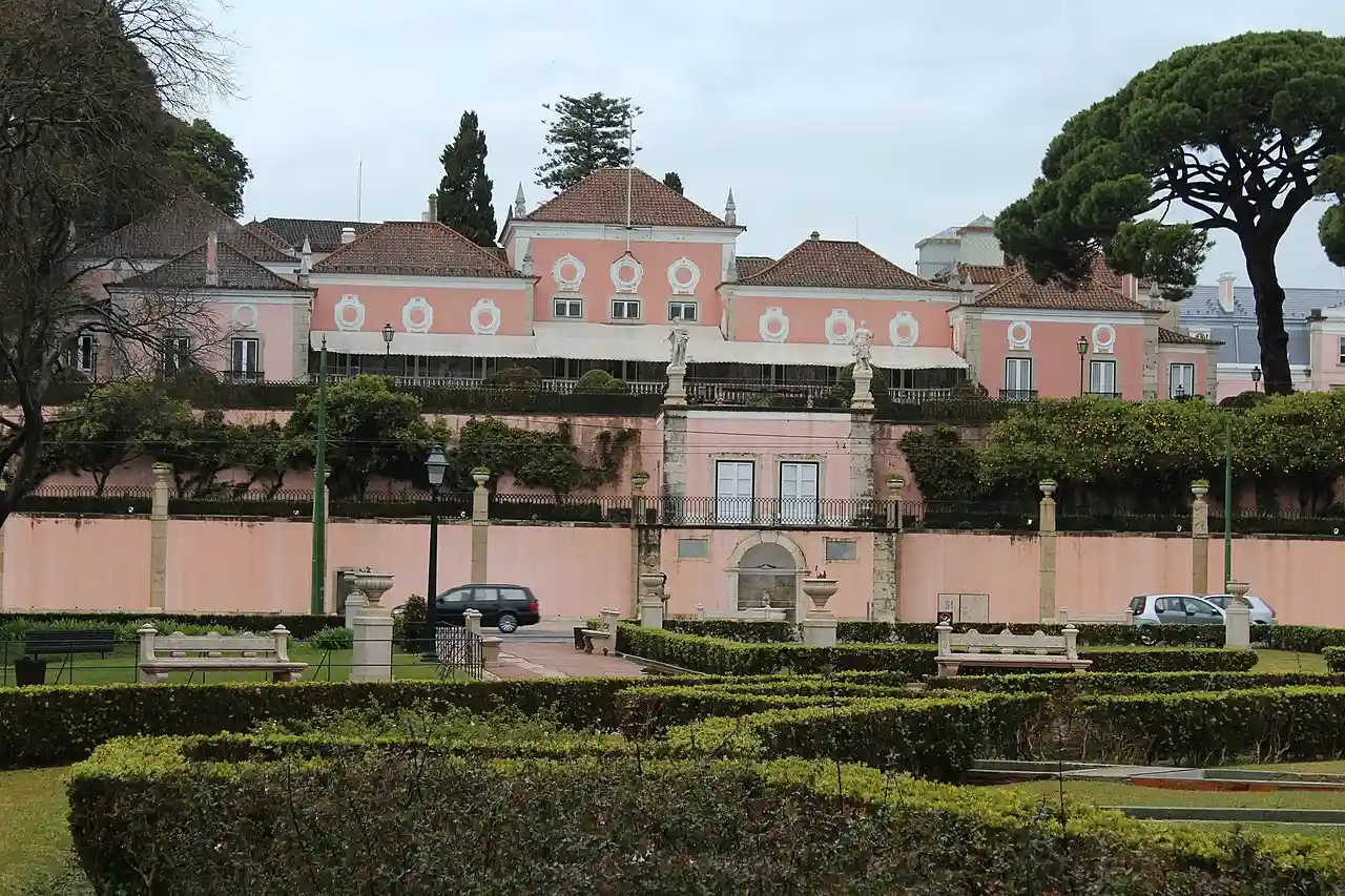 The Belém Palace (), formally the National Palace of Belém, (), is the current official residence of the president of the Portuguese Republic, the head of state of Portugal. Located in the Belém District of Lisbon, the palace's main façade fronts the Praça Afonso de Albuquerque, facing the Tagus River. A former residence of the Portuguese royal family, the Belém Palace complex is made up of various buildings, wings, courtyards, and gardens, built variously from the 18th to 21st centuries. Read more on Wikipedia