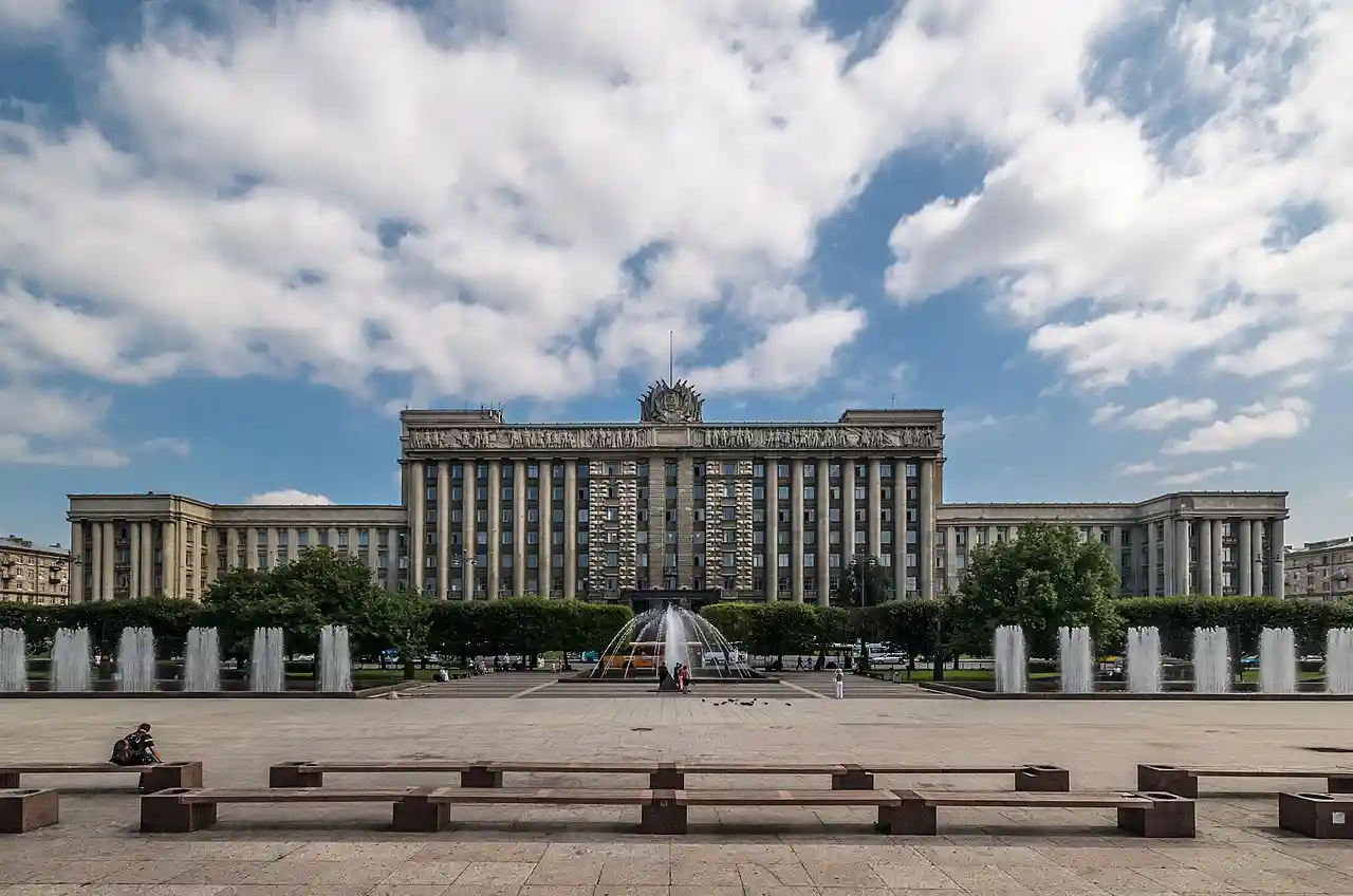 The House of Soviets (, Dom Sovetov) is the office building built in Stalinist style in the late 1930s in Saint Petersburg (then Leningrad). It is located in the Moskovsky District of Saint Petersburg. It has been described as "the purest form of totalitarian monumentality". Read more on Wikipedia