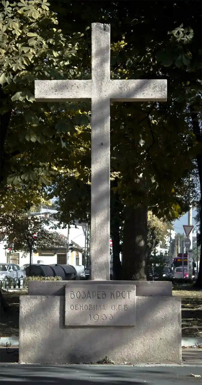 Vozarev Cross () is located in Belgrade, in the park between Vojvode Šupljikca Street and Mileševska Street (municipality of Vračar), and it was erected in 1847. It represents the immovable cultural property as the cultural monument. The famous Belgrade bookseller and a printer, Gligorije Vozarević, erected a wooden cross decorated with icons in his own field at Vračar. The contemporaries interpreted the erection of the cross not only as the symbol of the faith and religion, but also as the symbol of the liberation – the symbol of the victory. For that reason, this cross is considered as the first public monument in Belgrade. The ruined wooden cross was replaced by the Belgrade Municipality in 1933 with one in red artificial stone. The part of Belgrade was named after it Crveni Krst (The Red Cross). Read more on Wikipedia