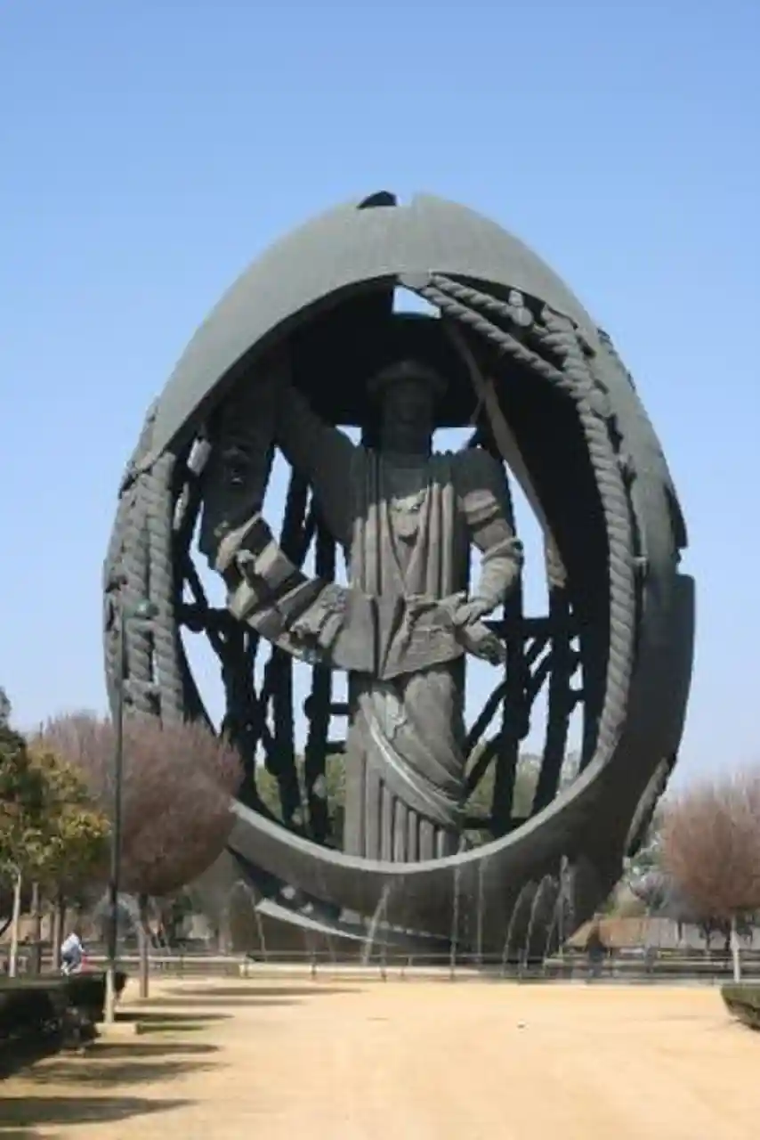 Birth of a New Man (Spanish: Nacimiento de un Hombre Nuevo), popularly known as el huevo de Colón ("the Columbus' egg"), is a monument in Seville, Spain. It is a work by Zurab Tsereteli, consisting of a colossal statue representing Christopher Columbus partially enfolded by an egg-like shell. Read more on Wikipedia