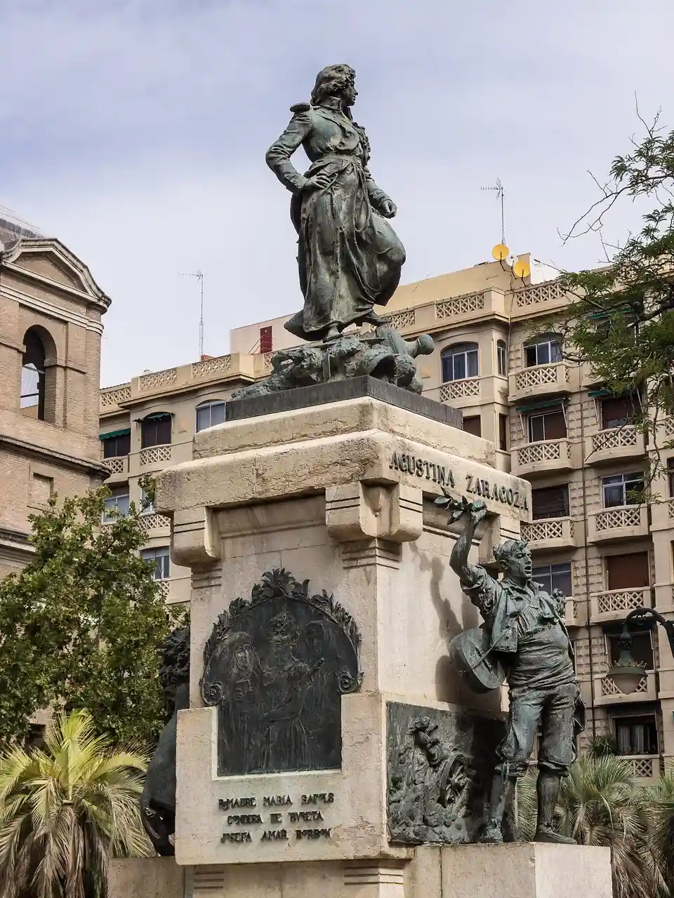 Agustina Zaragoza y las Heroínas or the Monument to Agustina de Aragón is an instance of public art in Zaragoza, Spain. Designed by Mariano Benlliure, it consists of a bronze statue of Agustina de Aragón topping off a stone pedestal that displays two other sculptural groups and a number of reliefs. The latter subsidiarily pay homage to another six heroines of the Zaragozan theatre of the Peninsular War. Read more on Wikipedia