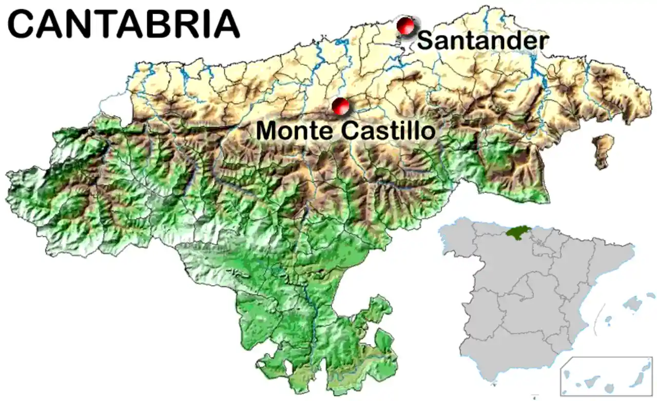 The Caves of Monte Castillo, located in the Cantabrian town of Puente Viesgo, contain one of the most important Paleolithic sites in the region. The complex of karstic caves is on the slopes of Monte Castillo, a hill south of Puente Viesgo, with an elevation of . Read more on Wikipedia