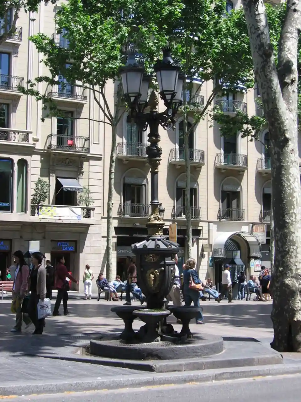 Font de Canaletes (Spanish: Fuente de Canaletas) is an ornate fountain, crowned by a lamp post, in Barcelona, Catalonia, in Rambla de Canaletes, the upper part of La Rambla, near Plaça de Catalunya. Read more on Wikipedia
