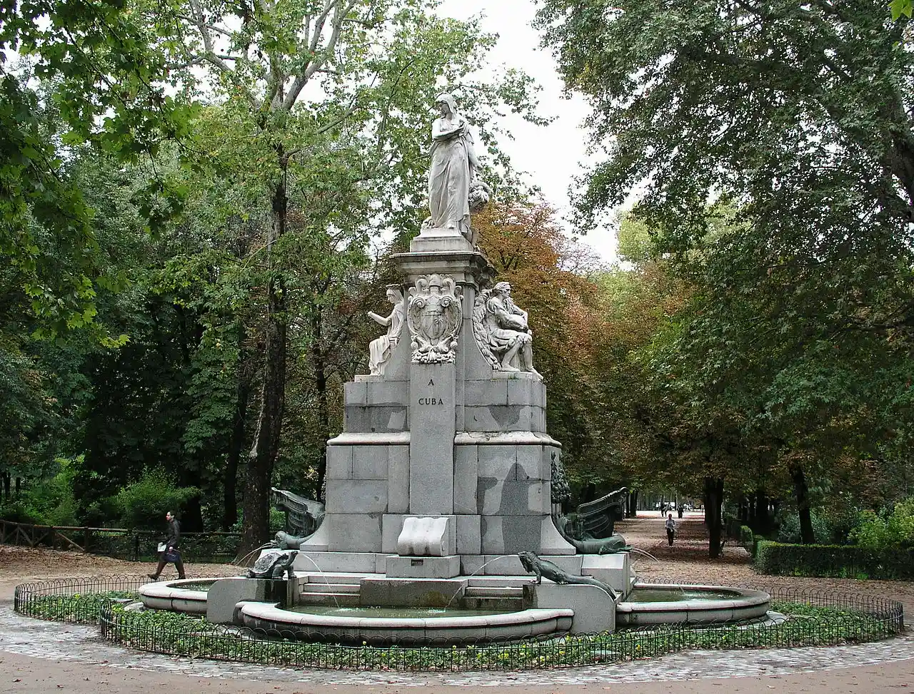 The Monument to Cuba is an instance of public art in Madrid, Spain, consisting of a fountain over which an sculptural group topped by an allegory of Cuba emerges from. It is located at El Retiro Park. Read more on Wikipedia