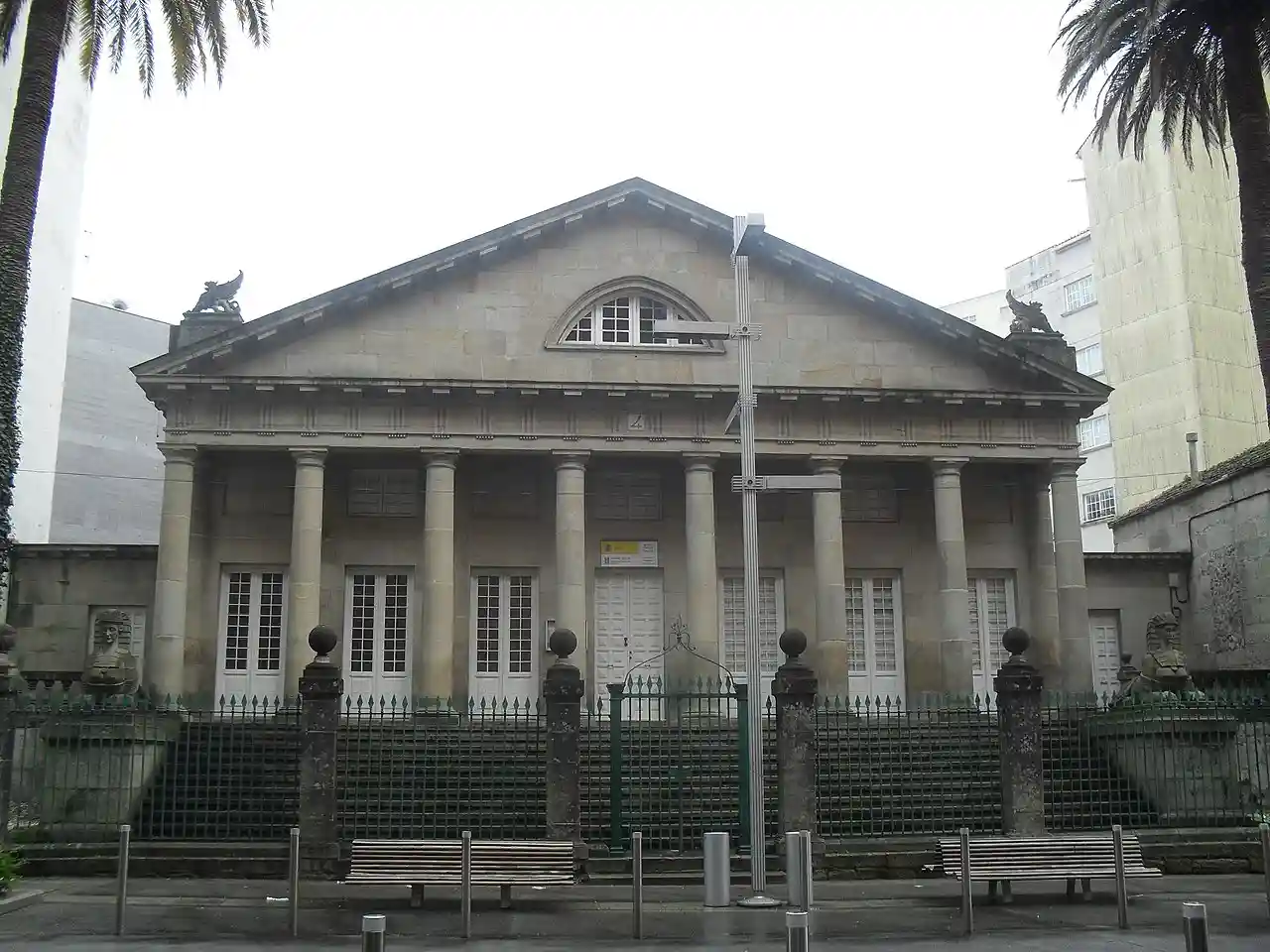 The Fonseca House is a building on the Paseo de Colón in the city of Pontevedra, Spain. It is one of the most impressive historical buildings in the city, distinguished by its neoclassical architecture and by the two stone Sphinxes and two large Canary palm trees that flank its entrance. It is currently the headquarters of the Historical Archive of the Province of Pontevedra. Read more on Wikipedia
