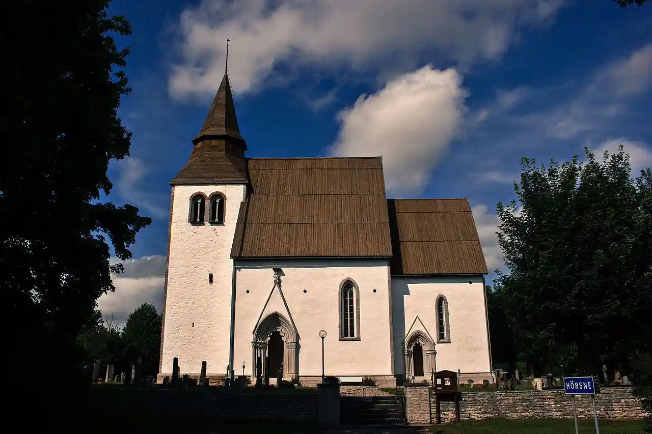 Hörsne Church () is a medieval church in Hörsne-Bara on the Swedish island of Gotland. Dating from the 13th to the 14th century, the church has unusually richly decorated portals. It belongs to the Diocese of Visby of the Church of Sweden. Read more on Wikipedia