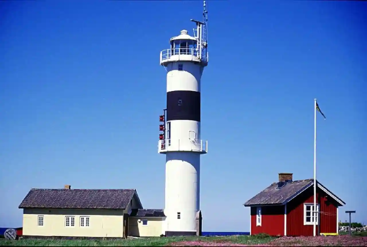 Nidingen is a Swedish Kattegat sea area skerry with a lighthouse station. It is located in Onsala parish in Kungsbacka Municipality in the province (landskap) of Halland. The island has with its surrounding reefs always posed a danger to shipping. The three lighthouses on the island, one of which is active, are today protected as heritage buildings. The island is also a nature reserve with a birding station and hostel, famous for large populations of different bird species. Read more on Wikipedia