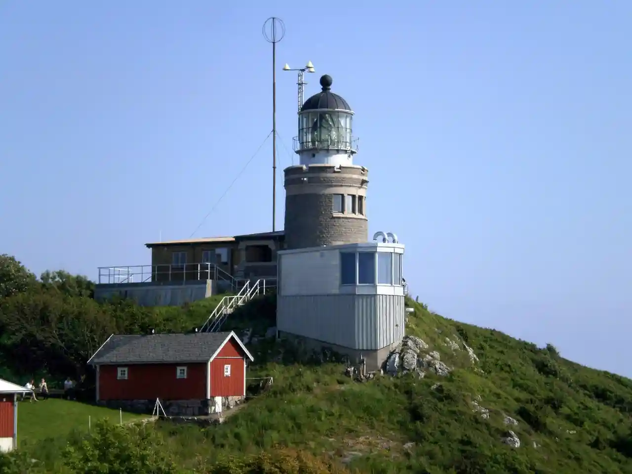 The Kullen Lighthouse () is an operational lighthouse in Scania, located by the mouth of Öresund, at the point of Kullaberg peninsula, in Höganäs, on the south-west coast of Sweden. Kullen is one of the most prominent landmarks along the Swedish coastline, and with its 1000 Watt electric bulb in a huge lenshouse, also the most powerful lighthouse in Scandinavia, overlooking one of the world's most heavily traveled waters. Read more on Wikipedia