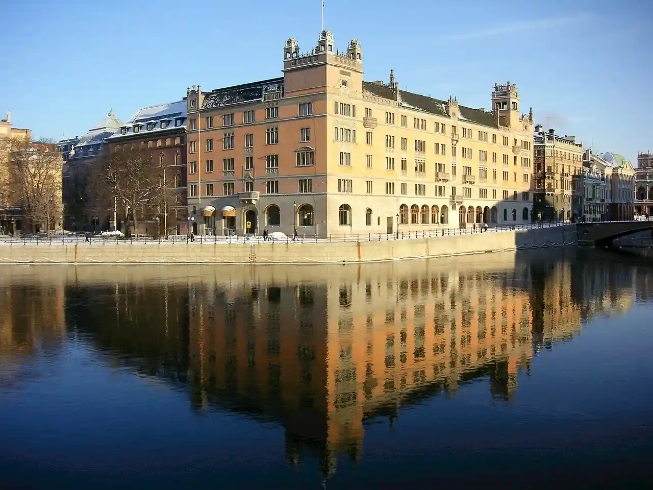 Rosenbad (, lit. "rosen bath") is a building in central Stockholm, precinct of Norrmalm. It is a building owned by the Swedish State and serves as the seat of the Government. The present government of Sweden is the right-leaning Kristersson Cabinet. Read more on Wikipedia