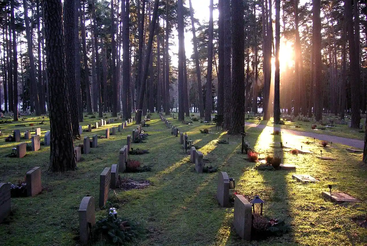(; ) is a cemetery located in the Gamla Enskede district south of central Stockholm, Sweden. It was inaugurated in 1920 and was inscribed on the UNESCO World Heritage List in 1994. Its design, by Gunnar Asplund and Sigurd Lewerentz, reflects the development of architecture from Nordic Classicism to mature functionalism. Read more on Wikipedia