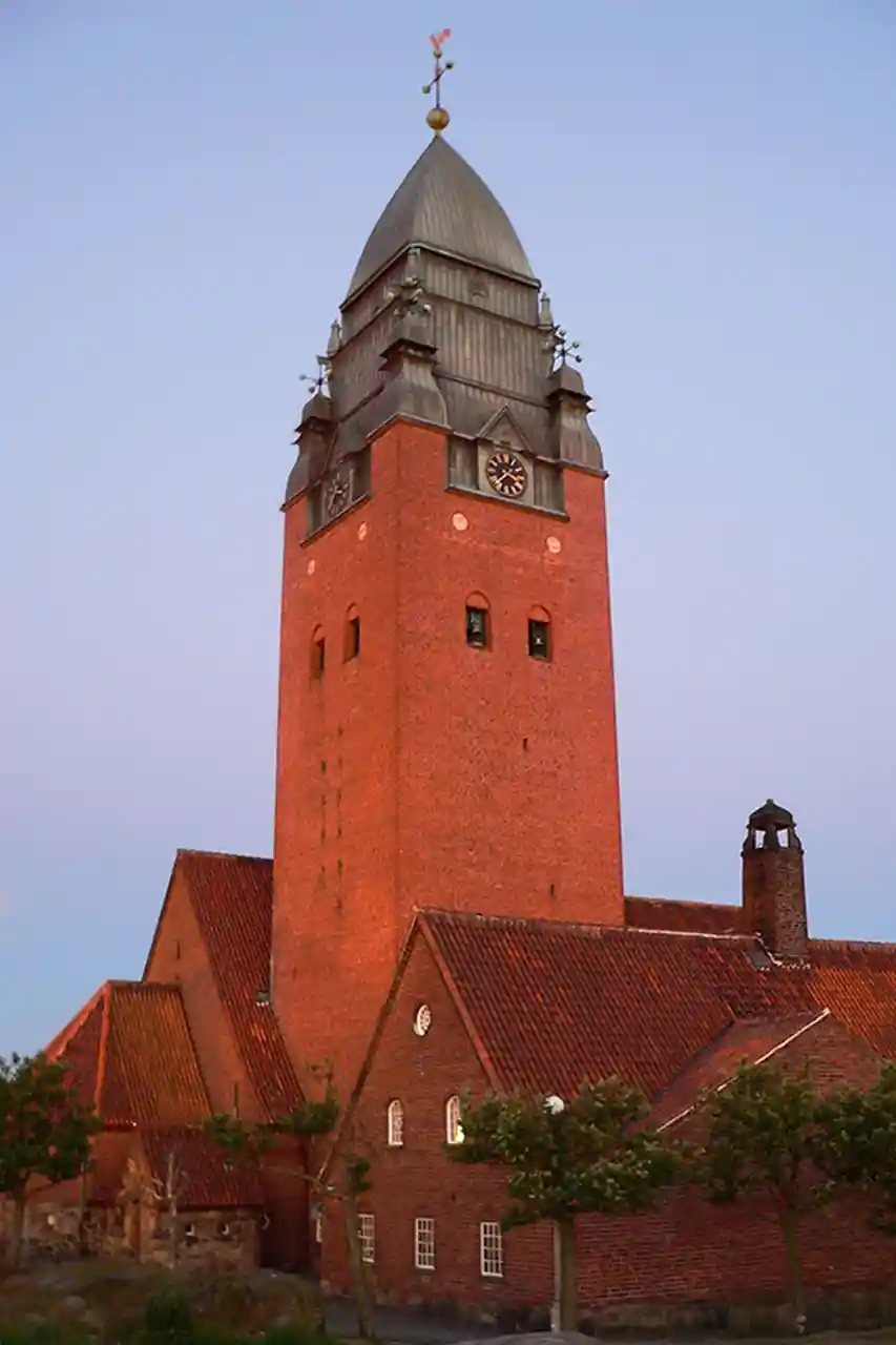 Masthugg Church () in Gothenburg, Sweden, was built in 1914. Its position on a high hill (Masthugget) close to the city and near the Göta älv makes it a striking sight – the church tower is high in itself. The church represents the National Romantic style in Nordic architecture and was designed by Sigfrid Ericson. The church, which has become one of the symbols of Gothenburg, is a popular tourist attraction. Read more on Wikipedia