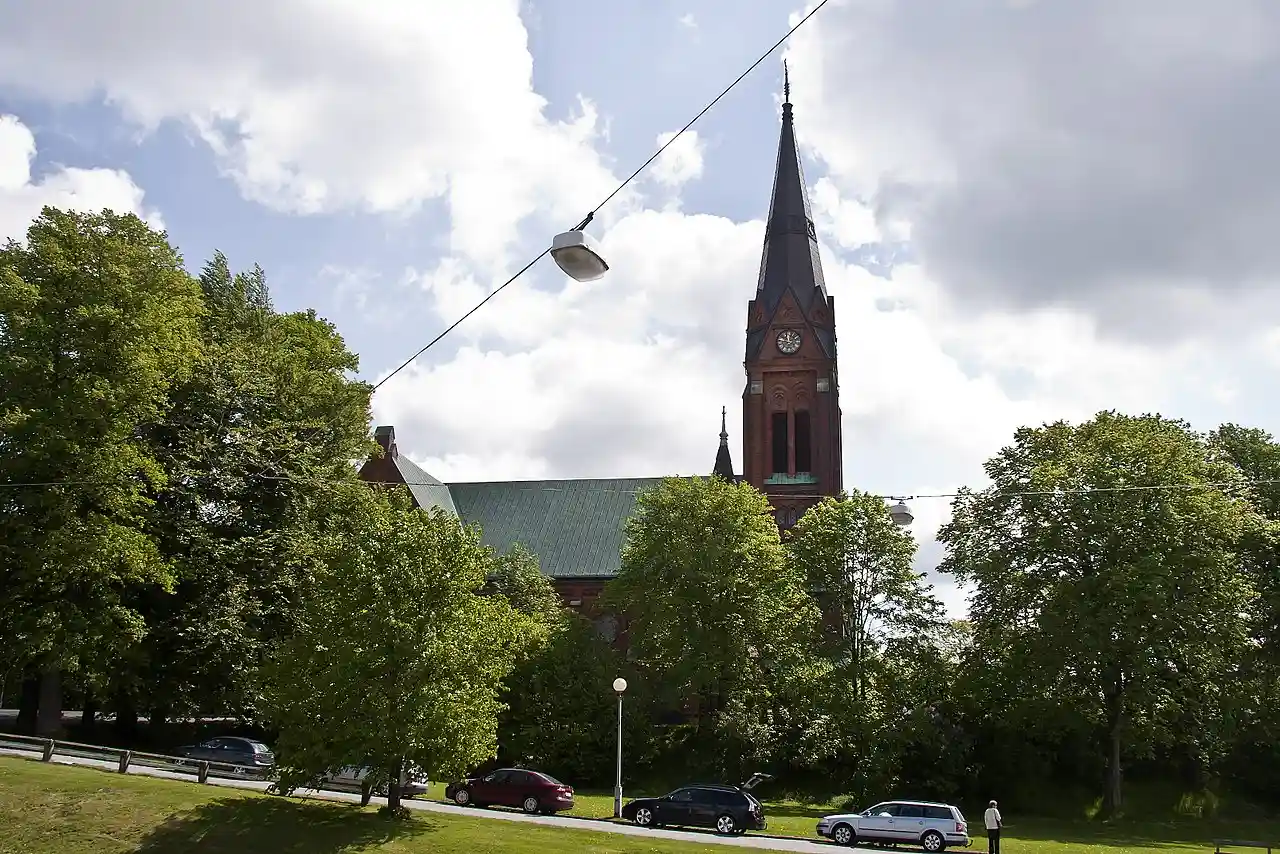 Örgryte new church () is a church in the gothic style on Svalberget. The church is a part of the Örgryte congregation () in Gothenburg. Because of the nature of the plot, the church is oriented northeast–southwest. It has a cross layout with open rafters and vaulted, pentagonal chancels. The church tower is almost 60 meters tall. Read more on Wikipedia