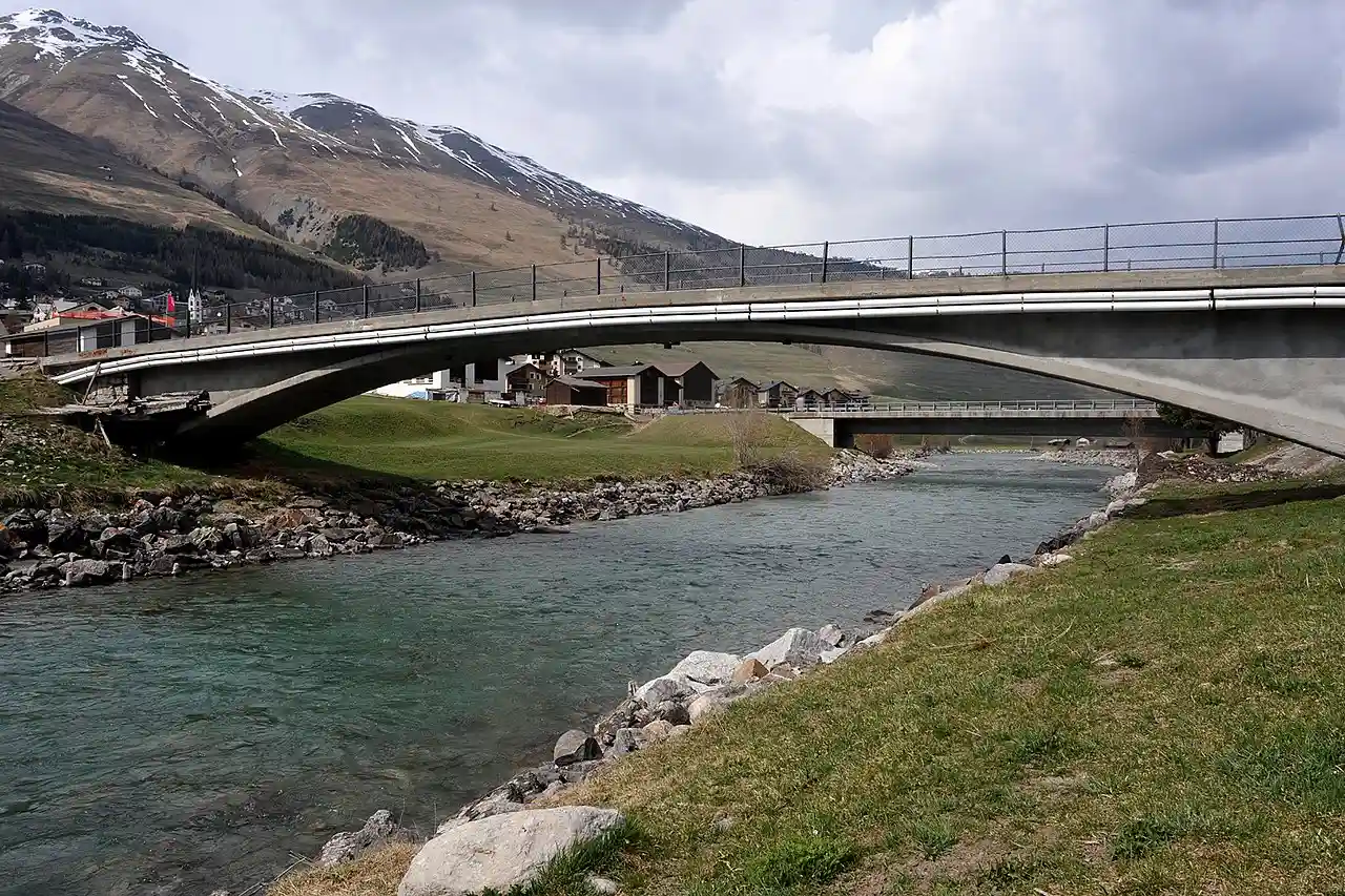 The Zuoz Bridge, also known as Innbrücke Zuoz is a three hinged reinforced concrete box girder hinged arch bridge designed by Swiss civil engineer Robert Maillart, and is the first box girder bridge to be constructed out of reinforced concrete. Constructed in 1901, this was the first of his independently designed reinforced concrete arch bridges. Read more on Wikipedia
