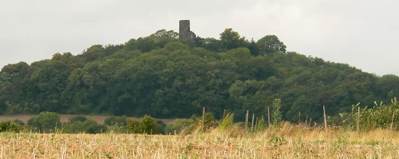 The Tomburg is a castle ruin near Wormersdorf, a village in the municipality of Rheinbach near the German city of Bonn. It is located in a small nature reserve that contains a number of rare plant species, on the high Tomberg hill. The Tomberg is a relic of the Tertiary. Liquid lava rose up in a volcano; erosion has since removed the outer layers and left a basalt dome. Read more on Wikipedia