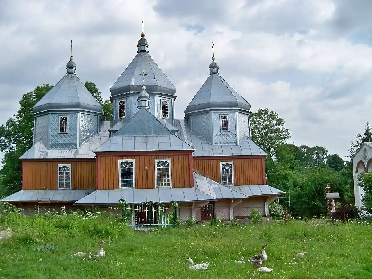 Church of the Resurrection () is an Orthodox parish church (OCU) in Poliany of the Pomoriany settlement hromada, Zolochiv Raion, Lviv Oblast. An architectural monument of local importance. It is the only wooden church with paintings by Modest Sosenko. Read more on Wikipedia