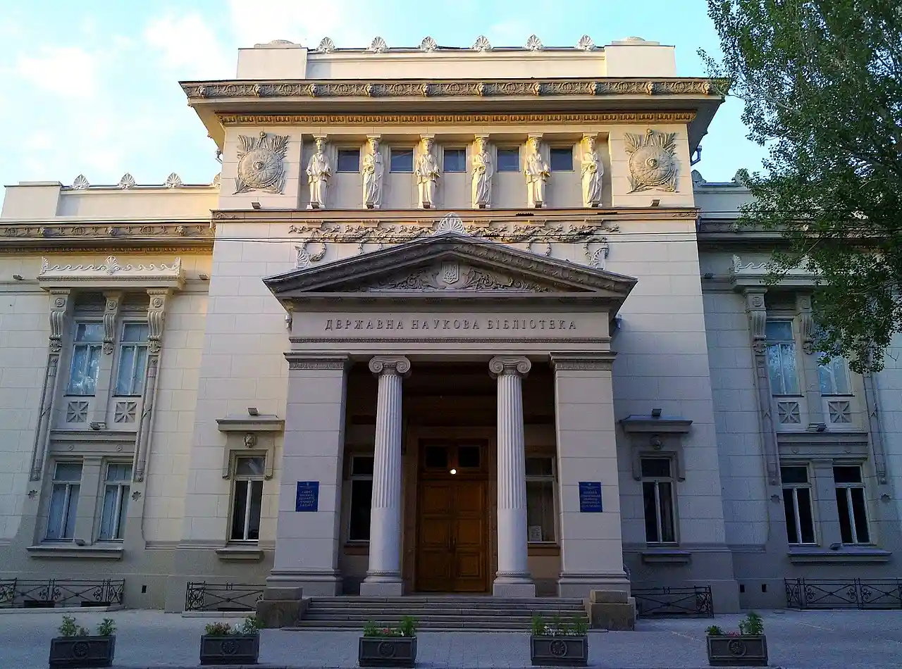 The Odesa National Scientific Library () is a public library established in 1829 in Odesa, Ukraine."Odessa National Scientific Library is a leading cultural center of Ukraine", in The Odessa Journal, 31 October 2020 The library moved to its current location in 1907, into a new building designed by architect Fyodor Nesturkh in neo-Greek style. The library has been renamed numerous times throughout history, arriving to its current name in 2015. The library has a collection of over 5 million books, including 200,000 rare editions.ODNB: "Library Collections", retrieved 20 March 2022 Read more on Wikipedia