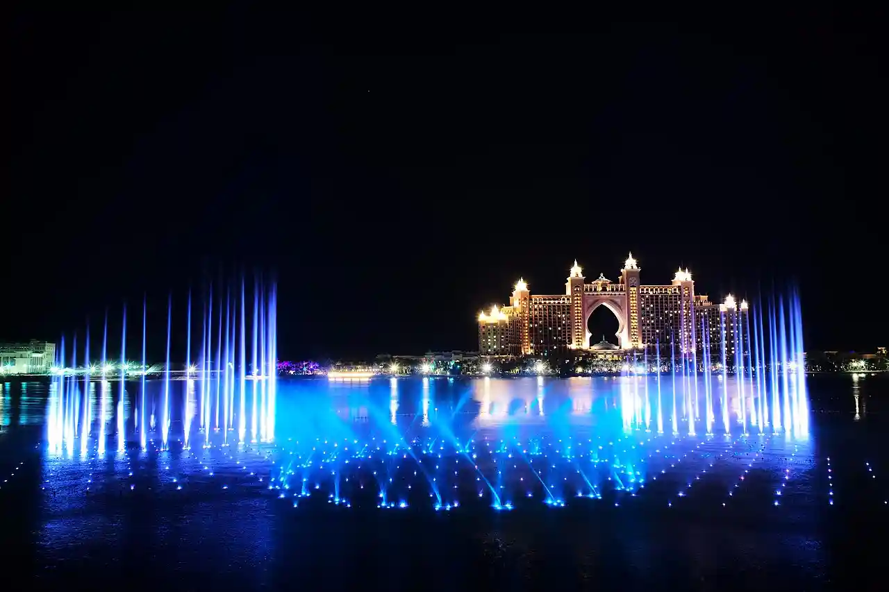 The Palm Fountain () is an artificial fountainWang Dekai. located at The Pointe shopping and dining district on Palm Jumeirah of Dubai, United Arab Emirates. Officially inaugurated on 22 October 2020, Yousra Zaki. the Fountain was designed and built by Beijing Water Design Technology Co., Ltd., which is a China-based service provider of musical water fountains.Yousra Zaki. Read more on Wikipedia