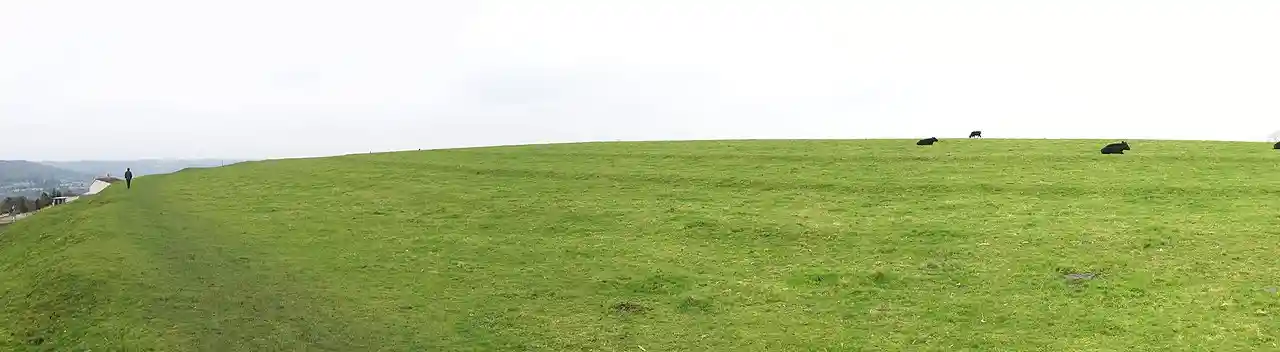 Little Solsbury Hill (more commonly known as Solsbury Hill) is a small flat-topped hill and the site of an Iron Age hill fort, above the village of Batheaston in Somerset, England. The hill rises to above the River Avon, which is just over to the south, and gives views of the city of Bath and the surrounding area. It is within the Cotswolds Area of Outstanding Natural Beauty. Read more on Wikipedia