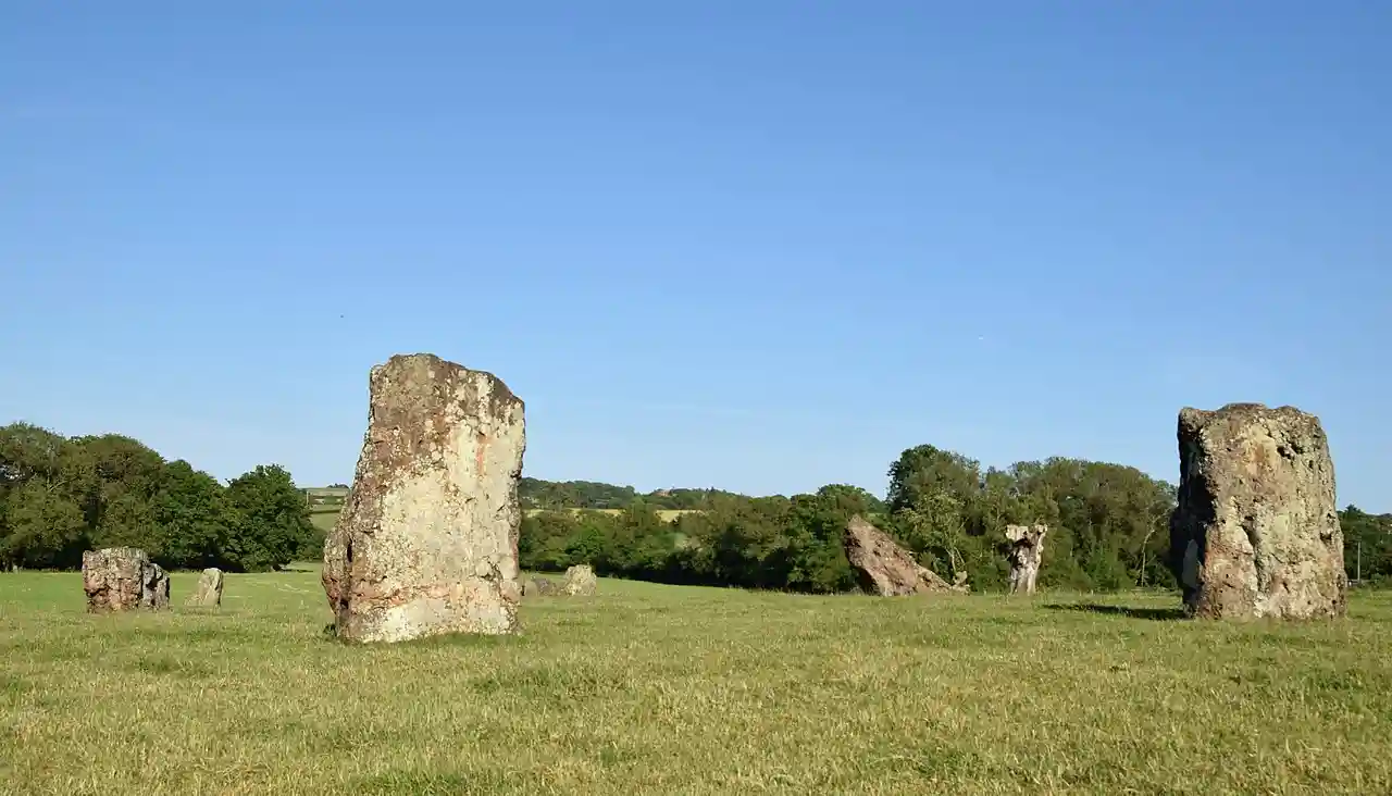 The Stanton Drew stone circles are just outside the village of Stanton Drew in the English county of Somerset. The largest stone circle is the Great Circle, in diameter and the second largest stone circle in Britain (after Avebury); it is considered to be one of the largest Neolithic monuments to have been built. The date of construction is not known, but is thought to be between 3000 and 2000 BCE, which places it in the Late Neolithic Read more on Wikipedia