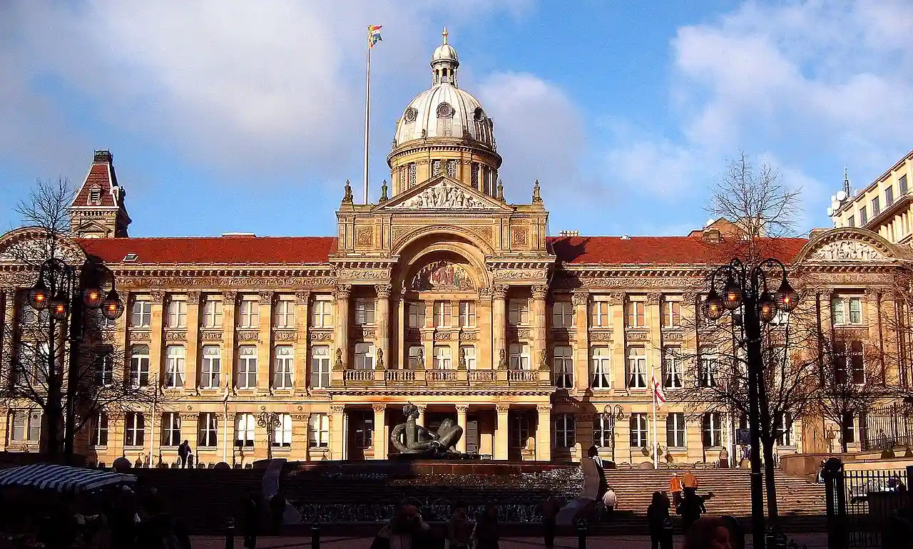 Birmingham City Council House in Birmingham, England, is the home of Birmingham City Council, and thus the seat of local government for the city. It provides office accommodation for both employed council officers, including the Chief Executive, and elected council members, plus the council chamber, Lord Mayor's Suite, committee rooms and a large and ornate banqueting suite, complete with minstrel's gallery. The first-floor's exterior balcony is used by visiting dignitaries and victorious sports teams, to address crowds assembled below. The Council House, which has its own postcode, B1 1BB, is located in Victoria Square in the city centre and is a Grade II* listed building. Read more on Wikipedia