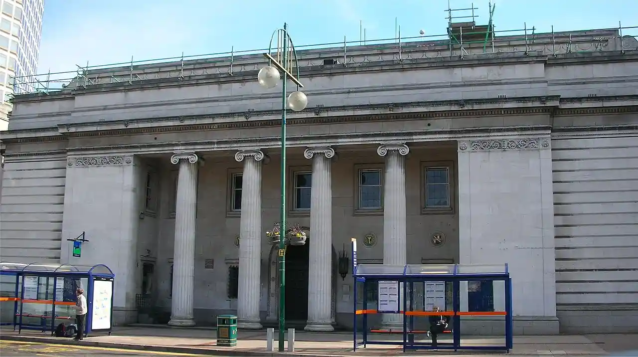 The former headquarters of the Birmingham Municipal Bank is a Grade II listed building by Thomas Cecil Howitt opposite what is now Centenary Square at 301 Broad Street, Birmingham, England. Read more on Wikipedia