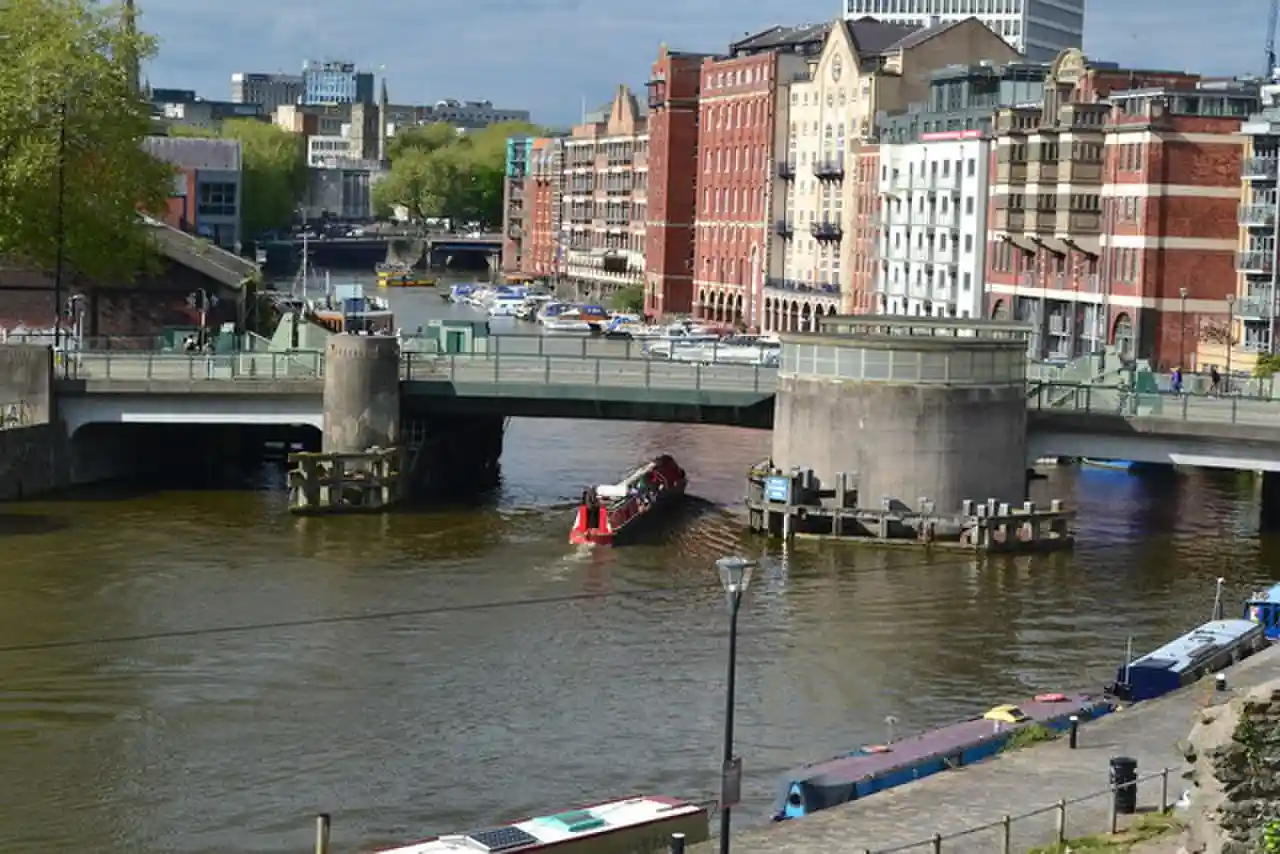Redcliffe Bridge is a bascule bridge over the floating harbour in Bristol, England. The bridge was built in 1938 and rebuilt in 1942 after being damaged by bombing during the Second World War. Read more on Wikipedia