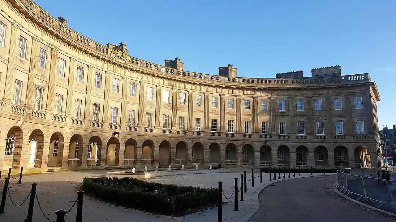 Buxton Crescent is a Grade-I-listed building in the town of Buxton, Derbyshire, England. It owes much to the Royal Crescent in Bath, but has been described by the Royal Institution of British Architects as "more richly decorated and altogether more complex". It was designed by the architect John Carr of York, and built for the 5th Duke of Devonshire between 1780 and 1789. In 2020, following a multi-year restoration and redevelopment project supported by the National Heritage Memorial Fund and Derbyshire County Council, The Crescent was reopened as a 5-star spa hotel. Read more on Wikipedia