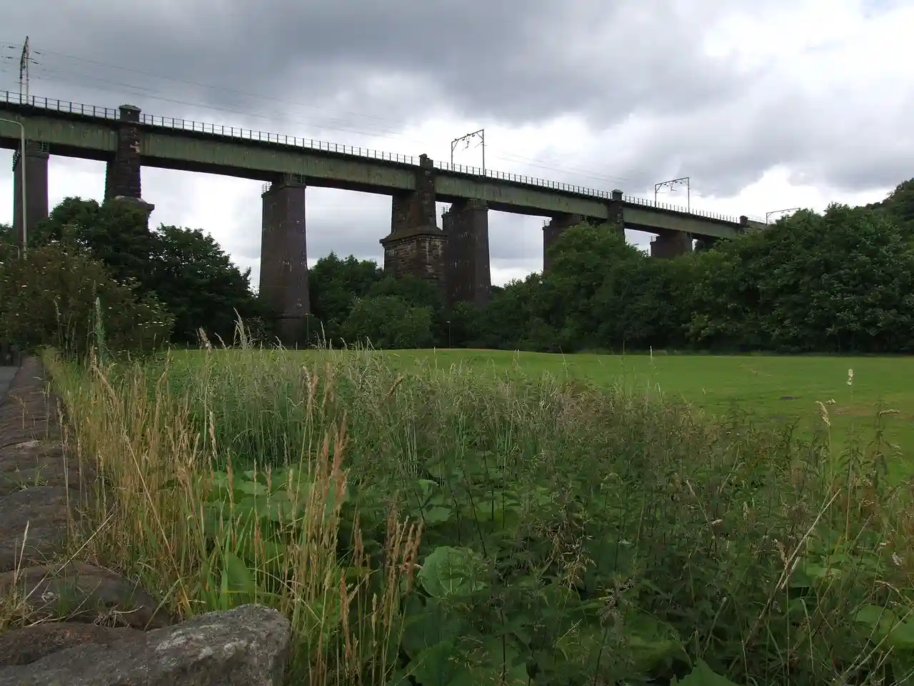 Dinting Viaduct (also known as Dinting Arches) is a 19th-century railway viaduct in Glossopdale in Derbyshire, England, that carries the Glossop Line over a valley at the village of Dinting. It crosses the Glossop Brook and the A57 road between Manchester and Sheffield. Read more on Wikipedia