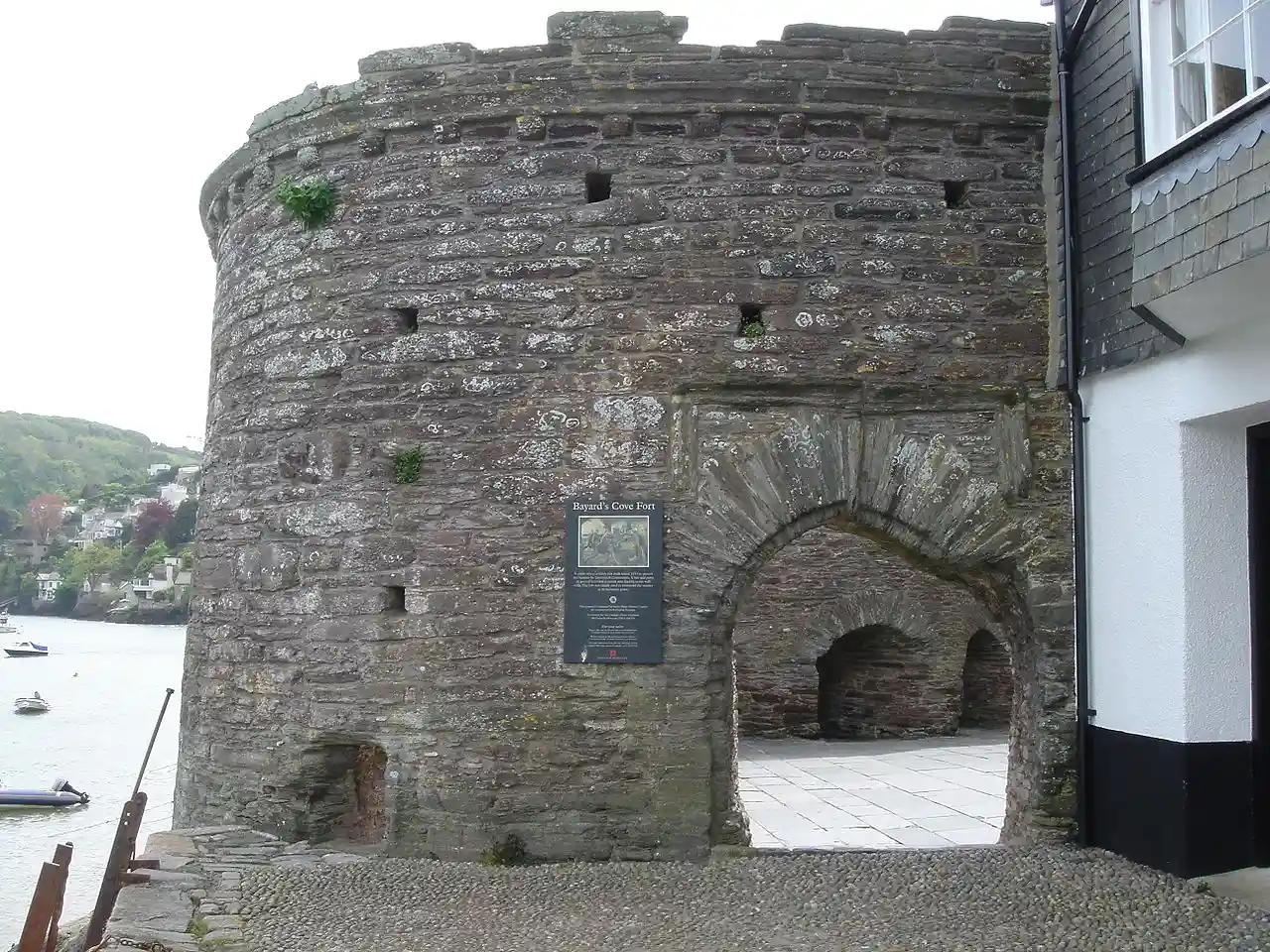 Bayard's Cove Fort, also known historically as Berescove or Bearscore Castle, is an English 16th-century artillery blockhouse, built to defend the harbour entrance at Dartmouth in Devon. Constructed in the early part of the century, it had eleven gunports for heavy artillery and was intended to engage enemy vessels that broke past the external defences of the Dartmouth and Kingswear castles. It remained armed during the English Civil War, but was neglected in the 18th century and used for storage. The fort was restored in the late 19th century and is now managed by English Heritage and open to visitors. Read more on Wikipedia