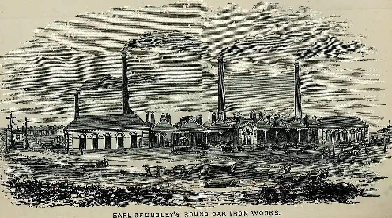 The Round Oak Steelworks was a steel production plant in Brierley Hill, West Midlands (formerly Staffordshire), England. It was founded in 1857 by Lord Ward, who later became, in 1860, The 1st Earl of Dudley, as an outlet for pig iron made in the nearby blast furnaces. During the Industrial Revolution, the majority of iron-making in the world was carried out within 32 kilometres of Round Oak. For the first decades of operation, the works produced wrought iron. However, in the 1890s, steelmaking was introduced. At its peak, thousands of people were employed at the works. The steelworks was the first in the United Kingdom to be converted to natural gas, which was supplied from the North Sea. The works were nationalized in 1951, privatized in 1953 and nationalized again in 1967 although the private firm Tube Investments continued to part manage the operations at the site. The steelworks closed in December 1982. Read more on Wikipedia