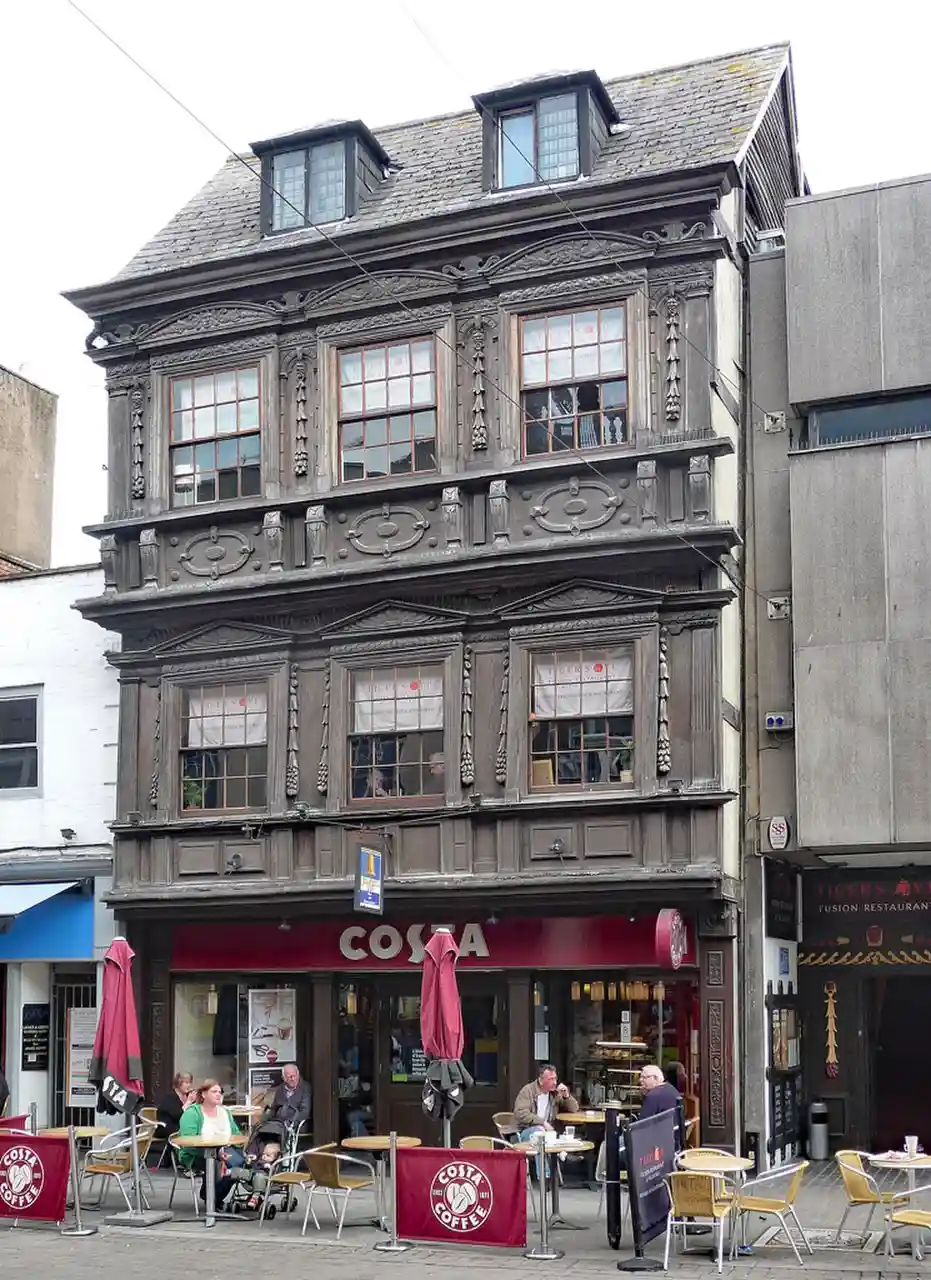 9 and 9A Southgate Street is a 17th-century Jacobean timber-framed merchant's house on Southgate Street, Gloucester. It has been a Grade I listed building since 23 January 1952. 9 Southgate Street is now occupied by Costa Coffee and 9A Southgate Street is occupied by The Tiger's Eye restaurant. Read more on Wikipedia