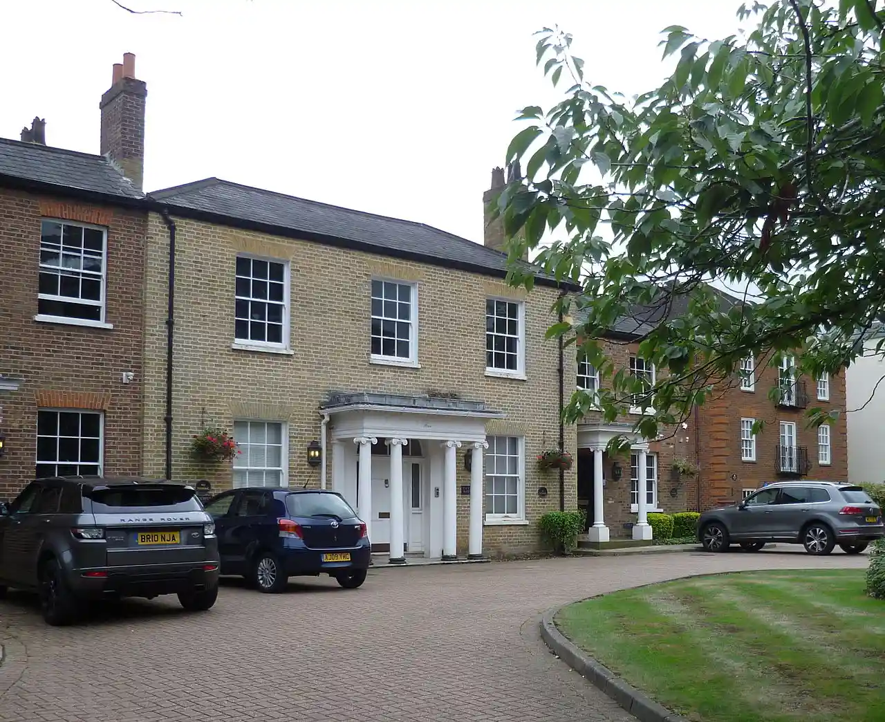 53 Wood Street is a grade II listed house at Wood Street in the market town of Chipping Barnet, a northern suburb of London in the United Kingdom. The house dates from the early 1800s and has a distinctive central porch with four ionic columns. Read more on Wikipedia