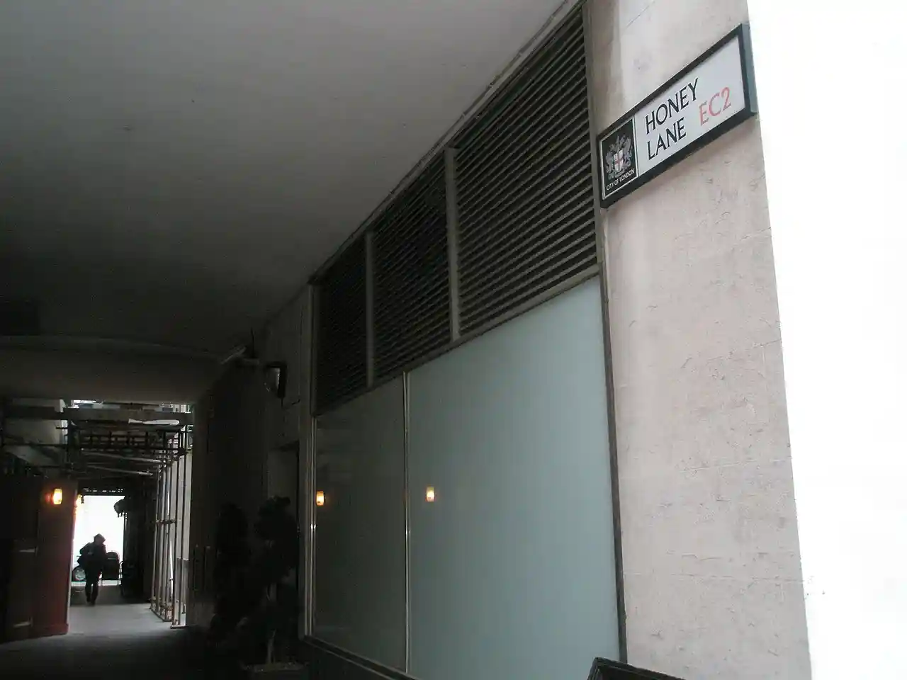 All Hallows, Honey Lane was a parish church in the City of London, England. Of medieval origin, it was destroyed in the Great Fire of London in 1666 and not rebuilt; the site became part of Honey Lane Market, which was in turn partially cleared to make way for the City of London School in the 19th century. Much of the area was destroyed during the bombing in World War II and has been redeveloped. The name Honey Lane is retained in a nearby walkway. Read more on Wikipedia