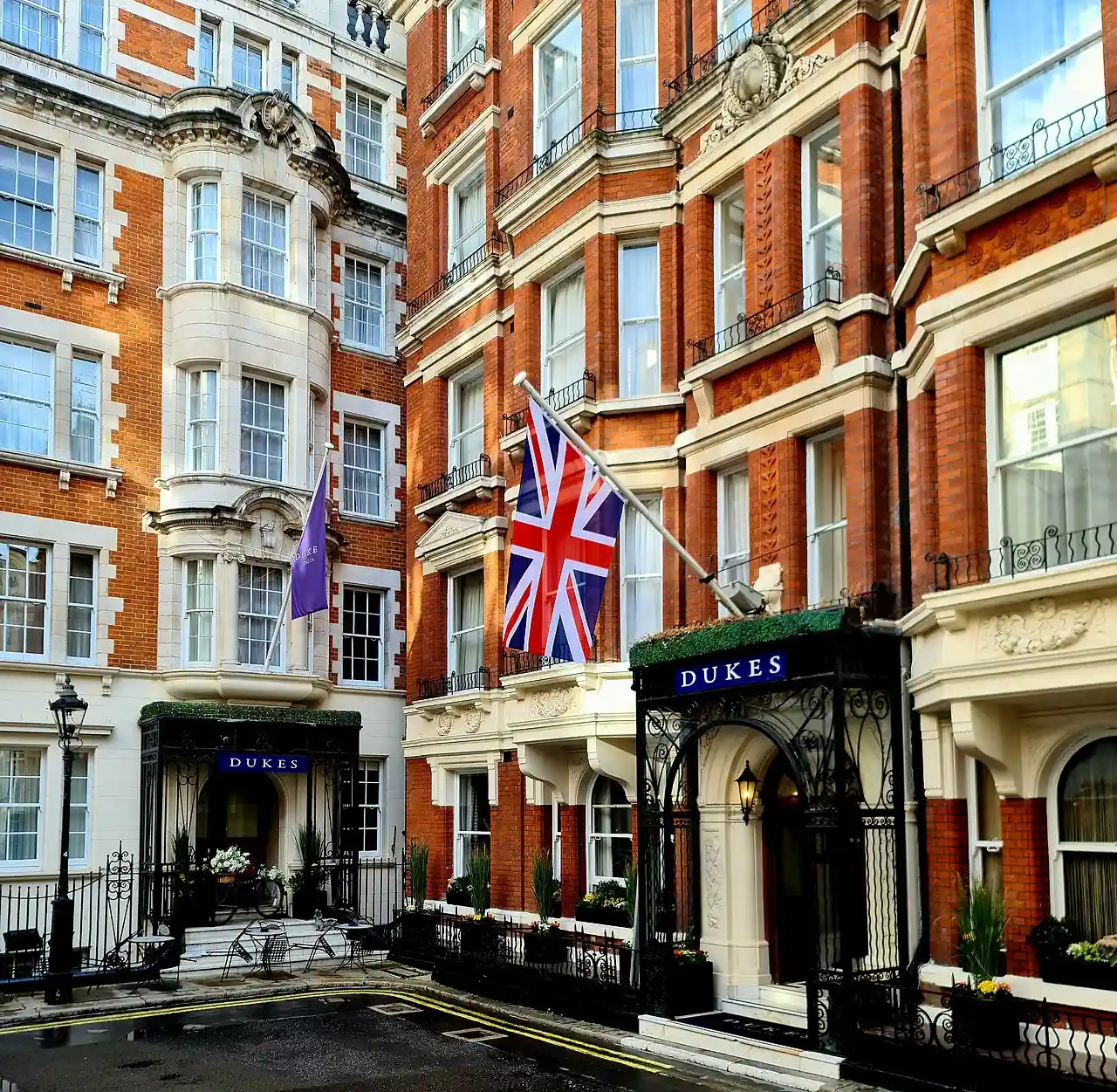 Dukes Hotel, now known just as Dukes, is a luxury 90 room/suite hotel at 35 and 36 St James's Place, London, founded in 1908. Previous guests have included the composer Edward Elgar, the author Ian Fleming, and various members of the British royal family. Read more on Wikipedia