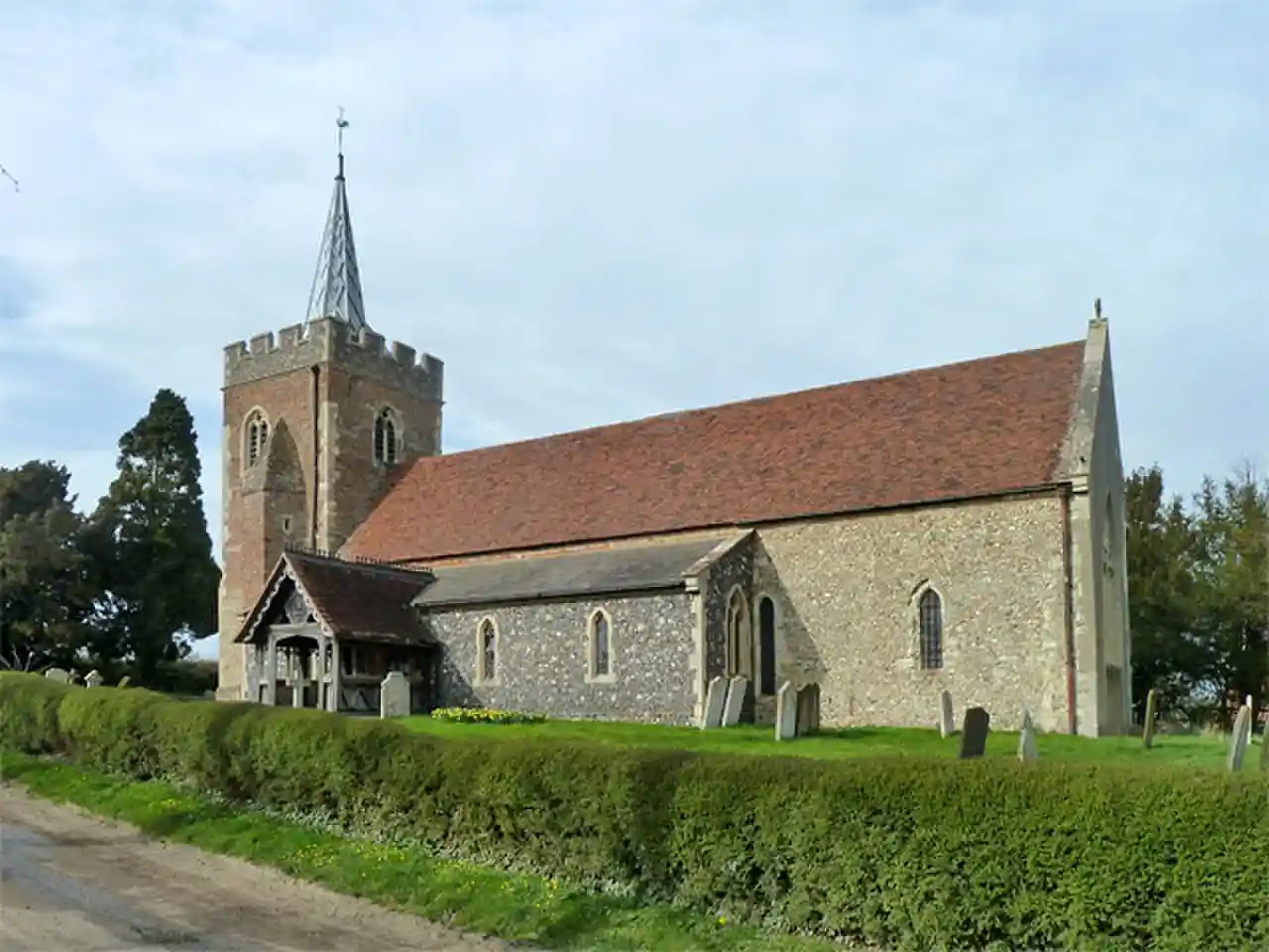 St Mary's Church is a Anglican parish church in Gilston, Hertfordshire, England. It dates from the 13th century. The church was restored by Philip Hardwick in 1852. It is a Grade I listed building. In the churchyard is the Johnston Monument designed by Eric Gill in 1923. This has its own Grade I historic designation. Read more on Wikipedia
