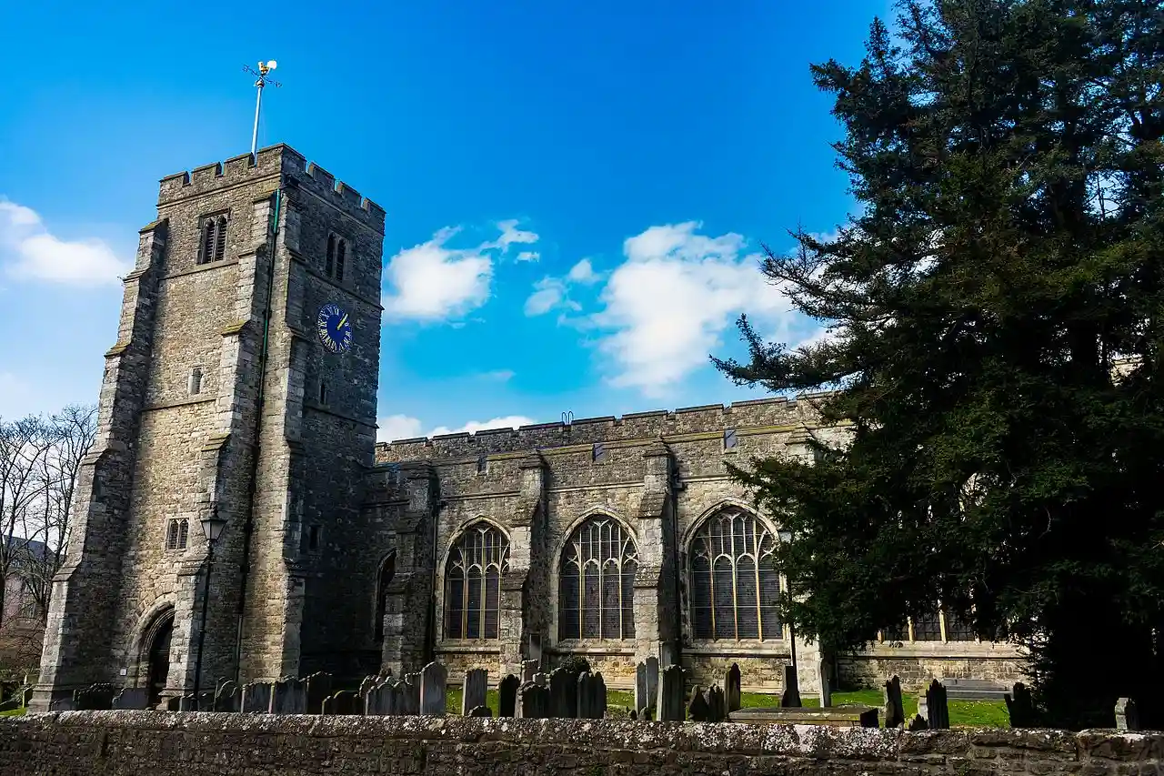 All Saints is a parish church in Maidstone, Kent. It is a Grade I listed building, and has been described as the grandest Perpendicular style church in Kent. Read more on Wikipedia