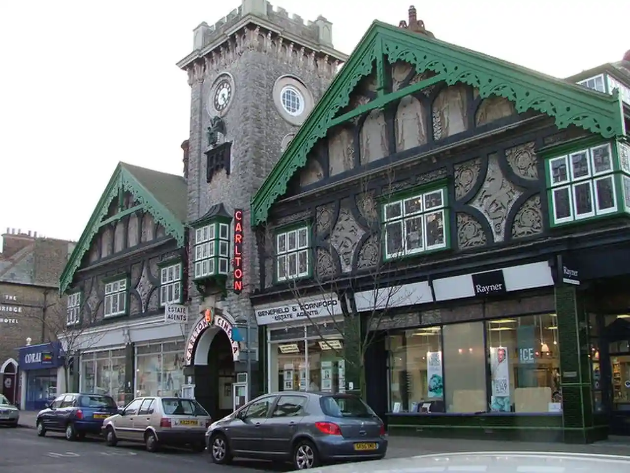 The Carlton Cinema, in Westgate-on-Sea, Kent, England dates from 1910. The extension of the railway into East Kent in 1871 led to the creation of a number of seaside resorts along the Kent coast to the west of Margate. Westgate-on-Sea was built in the 1870 by the London-based developers Corbett & McClymont. In 1910, a town hall was constructed but within 2 years, the building had been converted into a cinema. Originally named the Town Hall Cinema, it was renamed the Carlton in the 1930s. It remains a, privately owned, functioning cinema and is a Grade II listed building. Read more on Wikipedia