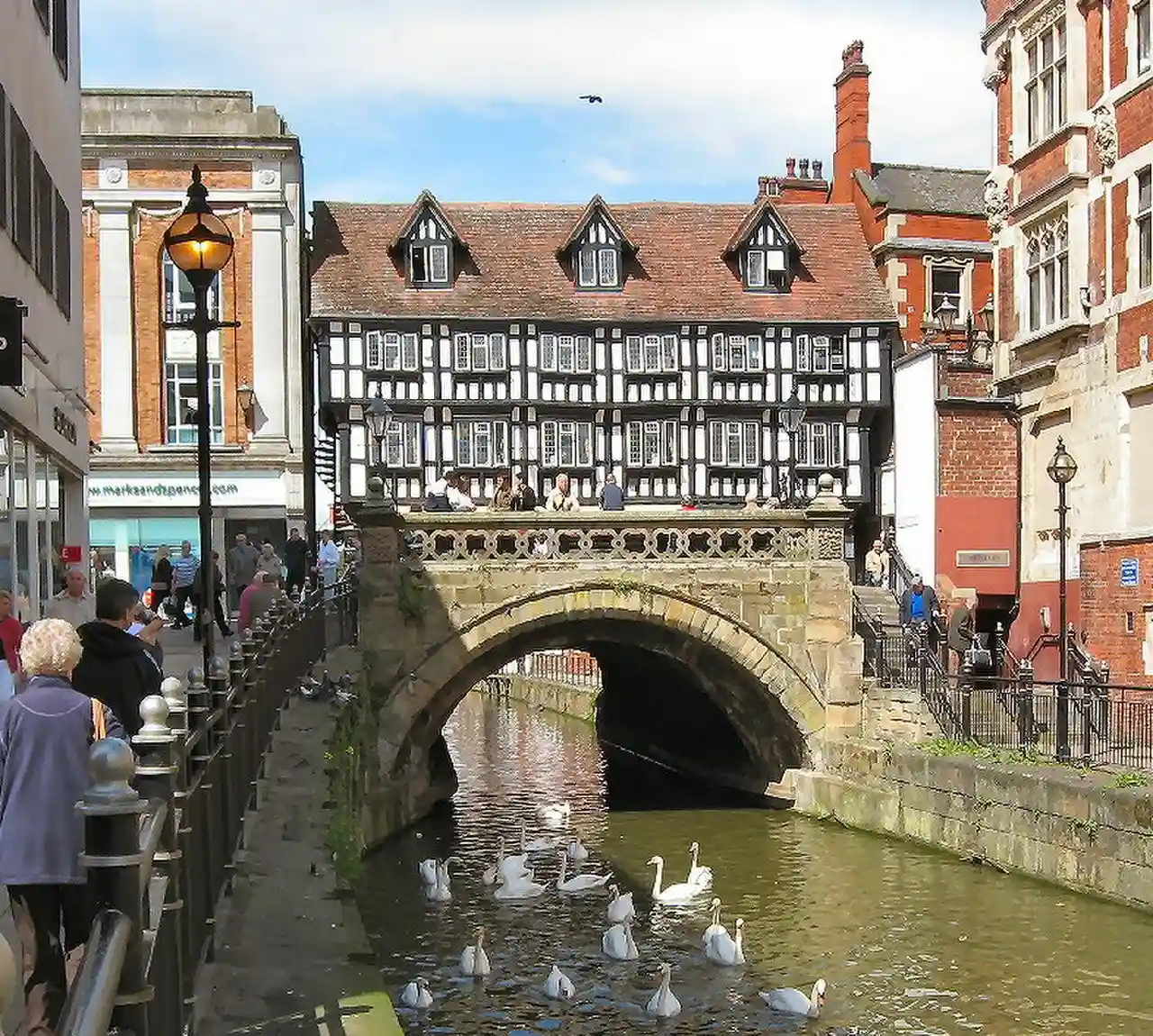 High Bridge, also known as the Glory Hole, carries the High Street across the River Witham in the city of Lincoln in eastern England.Trapped boat rescued from Lincoln's historic Glory Hole. BBC News. 28 November 2023. Retrieved 3 December 2023. It is the oldest bridge in the United Kingdom on which buildings still stand. Read more on Wikipedia