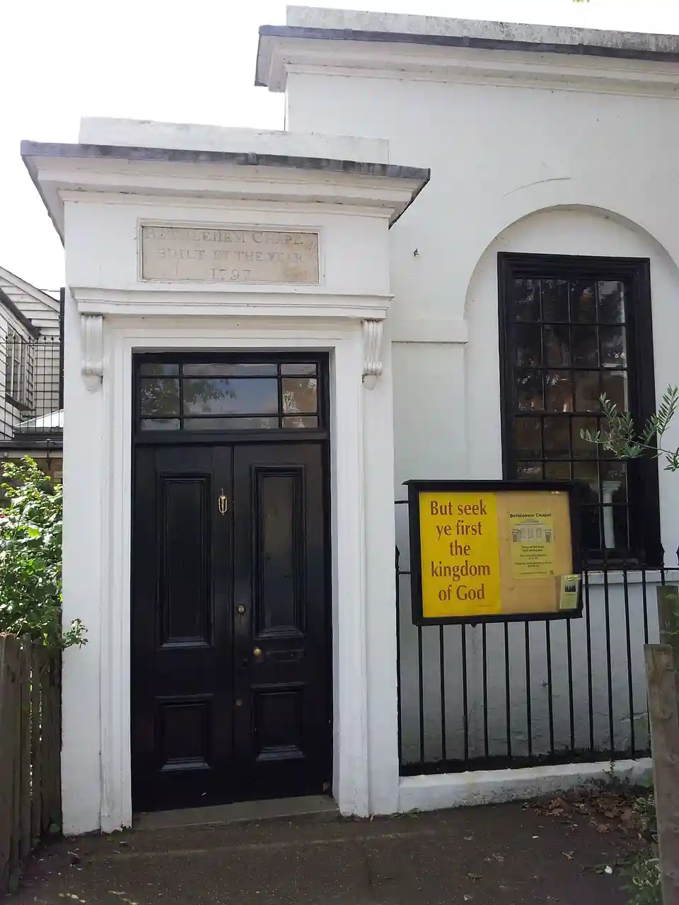 Bethlehem Chapel, Richmond is an independent Calvinistic chapel on the east side of Church Terrace in Richmond, London. Built in 1797, the small one-storey stuccoed building is Grade II* listed. It still has its original galleried interior with pews and pulpit. Read more on Wikipedia