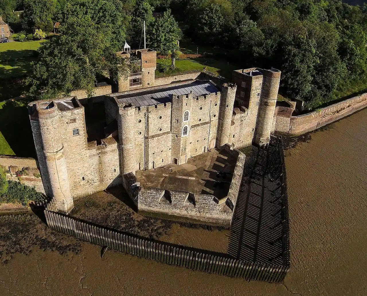 Upnor Castle is an Elizabethan artillery fort located on the west bank of the River Medway in Kent. It is in the village of Upnor, opposite and a short distance downriver from the Chatham Dockyard, at one time a key naval facility. The fort was intended to protect both the dockyard and ships of the Royal Navy anchored in the Medway. It was constructed between 1559 and 1567 on the orders of Elizabeth I, during a period of tension with Spain and other European powers. The castle consists of a two-storeyed main building protected by a curtain wall and towers, with a triangular gun platform projecting into the river. It was garrisoned by about 80 men with a peak armament of around 20 cannon of various calibres. Read more on Wikipedia