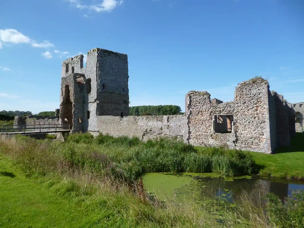 Baconsthorpe Castle, historically known as Baconsthorpe Hall, is a ruined, fortified manor house near the village of Baconsthorpe, Norfolk, England. It was established in the 15th century on the site of a former manor hall, probably by John Heydon I and his father, William. John was an ambitious lawyer with many enemies and built a tall, fortified house, but his descendants became wealthy sheep farmers, and being less worried about attack, developed the property into a more elegant, courtyard house, complete with a nearby deer park. Read more on Wikipedia