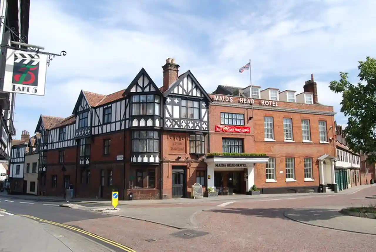 The Maids Head Hotel is an AAThe hotels AA listing 4 star hotel in the English city of Norwich within the county of Norfolk in the United Kingdom.OS Explorer Map 237 – Norwich, Wymondham, Attleborough and Watton. . The hotel has been a Grade II* listed building since 26 February 1954. Read more on Wikipedia
