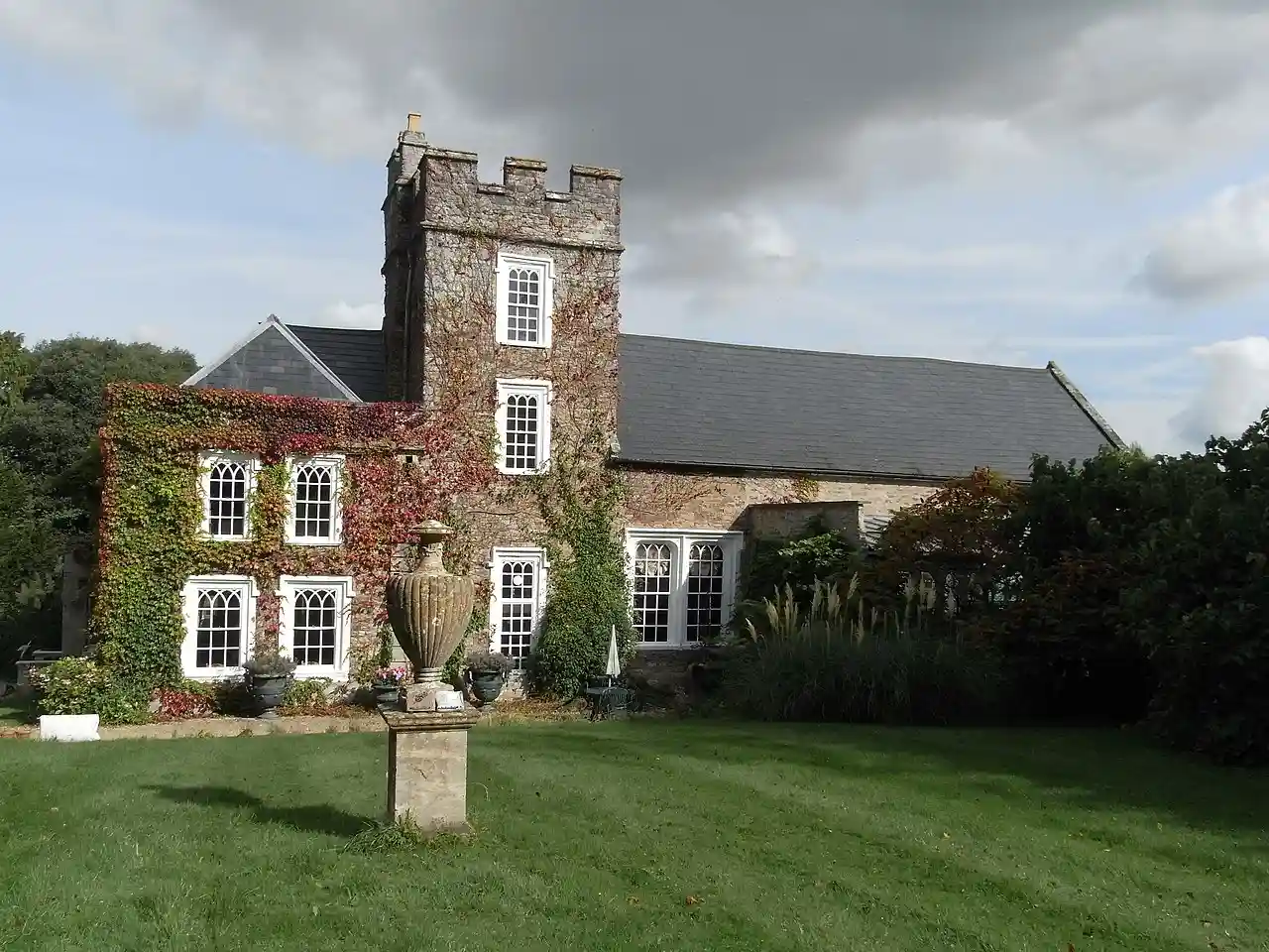 Hutton Court is a country house at Hutton, Somerset, England, built in the 15th century as a manor house. It is Grade II* listed on the National Heritage List for England. In addition to the main house, the boundary wall, summerhouse and the gates and piers to the hall are all separately Grade II listed. and stands immediately to the south of the parish church. Read more on Wikipedia