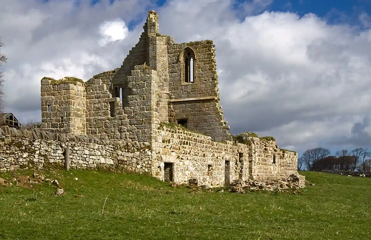 Cartington Castle is a ruinous, partly restored medieval English castle in the hamlet of Cartington, north-west of Rothbury in the county of Northumberland, England, looking down on the River Coquet. It is a Scheduled Ancient Monument and a Grade I listed building. Read more on Wikipedia