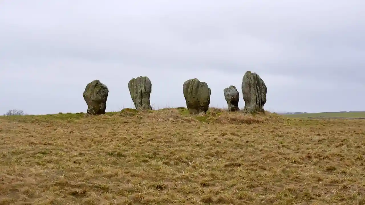 Duddo Five Stones () is a stone circle north of Duddo in North Northumberland, approximately 4miles (6 km) South of the Scottish Border. The stones were known as the Four Stones until 1903, when the fifth stone was re-erected to improve the skyline. There were originally seven stones, the empty sockets of two stones being found on the western side during excavation in the 1890s. Read more on Wikipedia