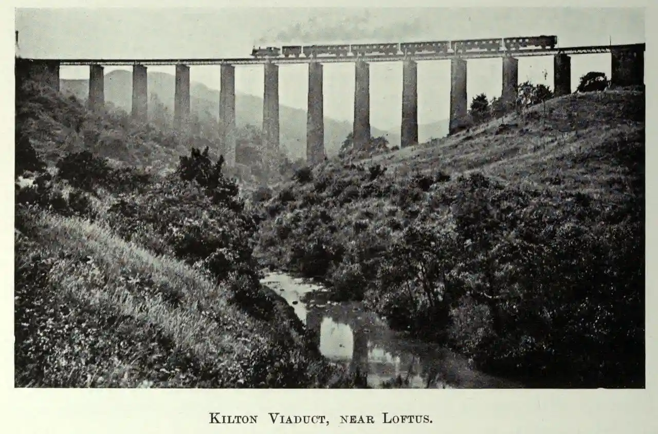 Kilton Viaduct was a railway viaduct that straddled Kilton Beck, near to Loftus, in North Yorkshire, England. The viaduct was opened to traffic in 1867, however in 1911, with the viaduct suffering subsidence from the nearby ironstone mining, the whole structure was encased in waste material from the mines creating an embankment which re-opened fully to traffic in 1913. The railway closed in 1963, but then in 1974, it re-opened as part of the freight line to Boulby Mine carrying potash traffic. Read more on Wikipedia